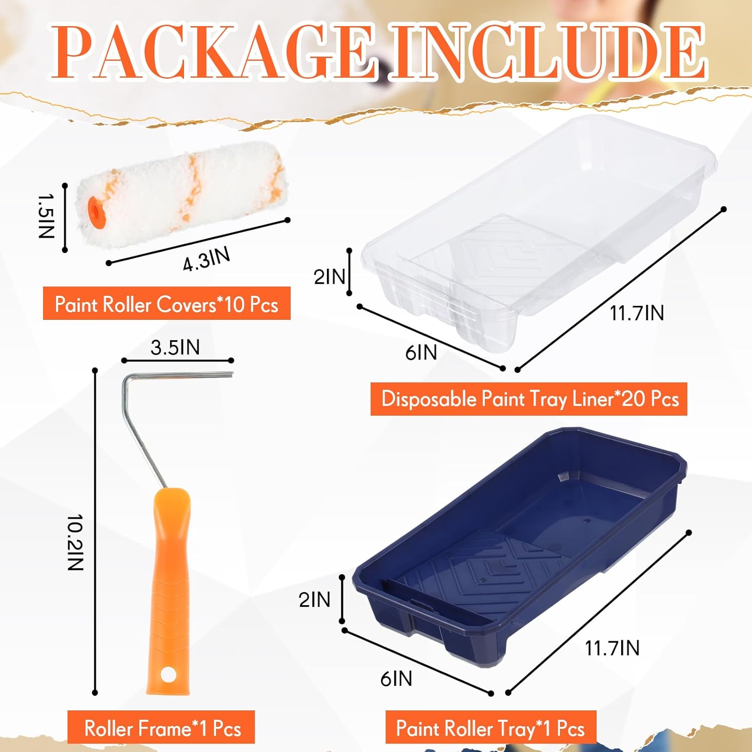 - 4 Inch Paint Roller Kit: you will receive 1 blue plastic paint tray in 4 inches, 20 disposable paint tray liners in 4 inches, 1 paint roller frame in 4 inches and 10 roller covers 4 inches, enough quantities and ideal set can meet your needs