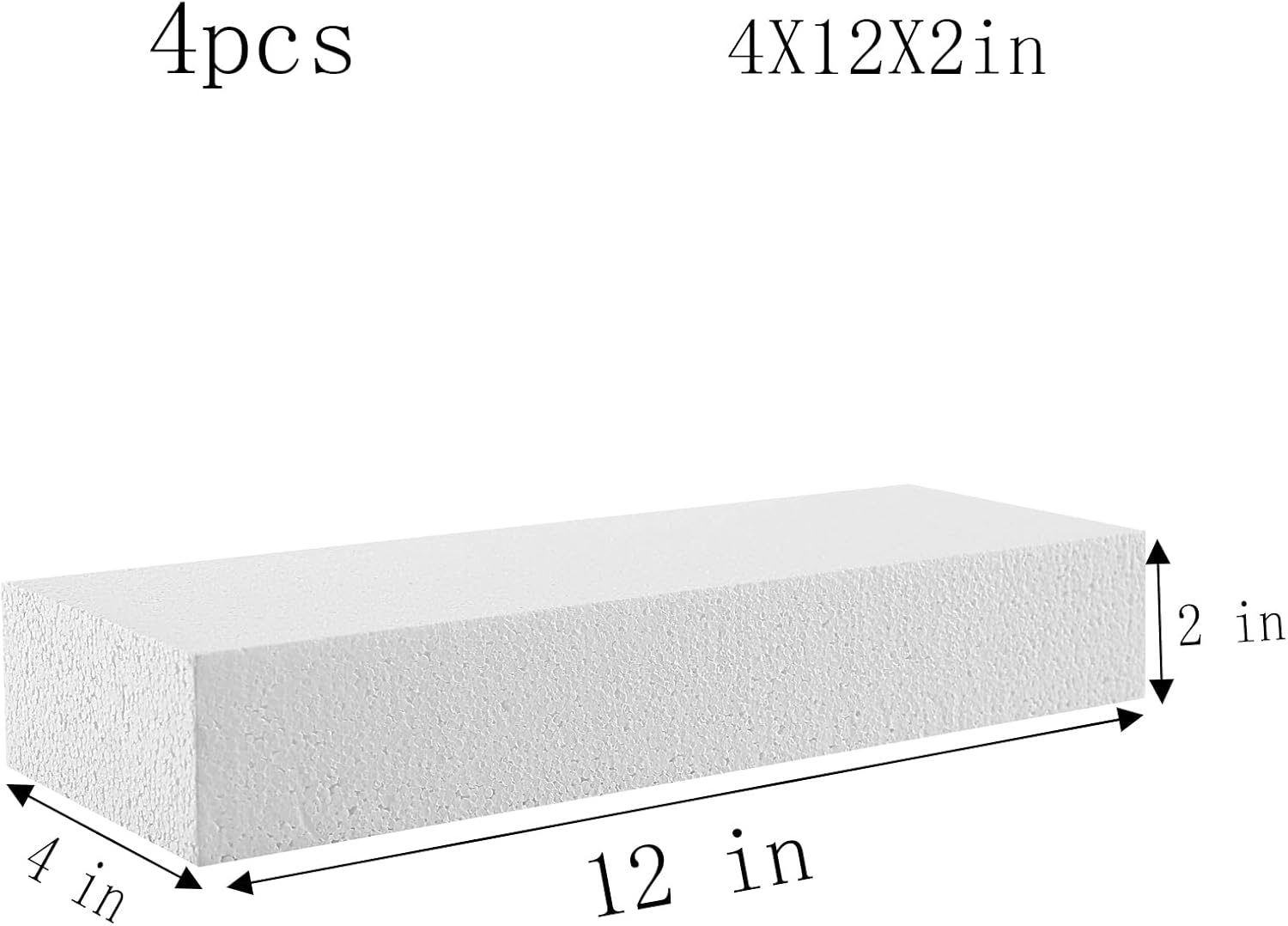 AMZQNART 4pcs Craft Foam Blocks 4×12×2in Polystyrene Blocks, Used for Making Modeling Projects, Flower Arrangements, and DIY School and Home Art Projects, in White Color.
