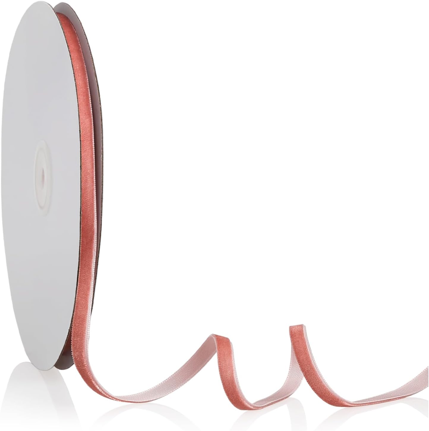 1/4" X 20 Yards Rose Gold Velvet Ribbon for Christmas Tree Wreath Decoration Handmade Crafts Ornaments Gift Wrapping & Bow Making