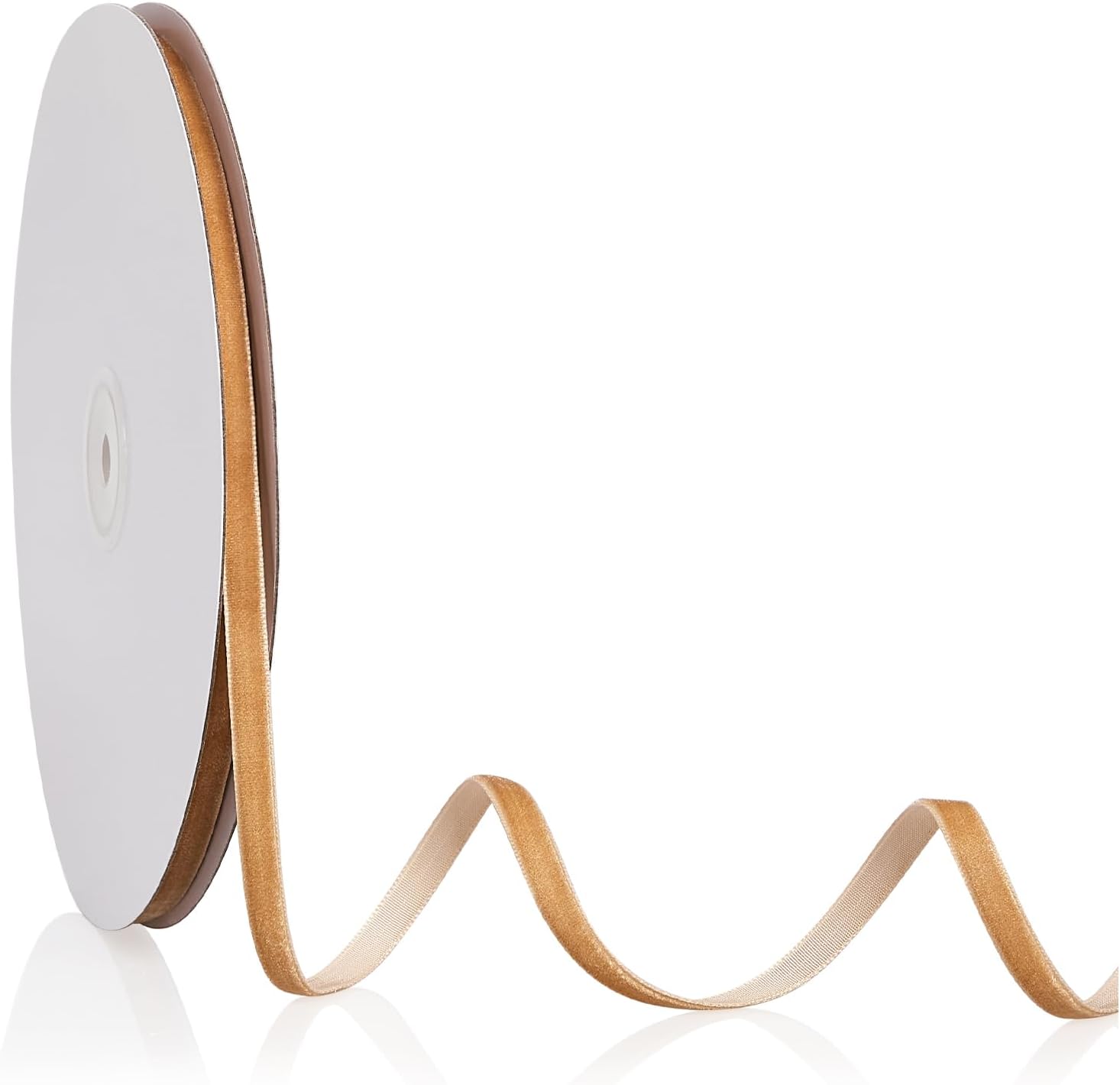 1/4" X 20 Yards Light Khaki Velvet Ribbon for Christmas Tree Wreath Decoration Handmade Crafts Ornaments Gift Wrapping & Bow Making