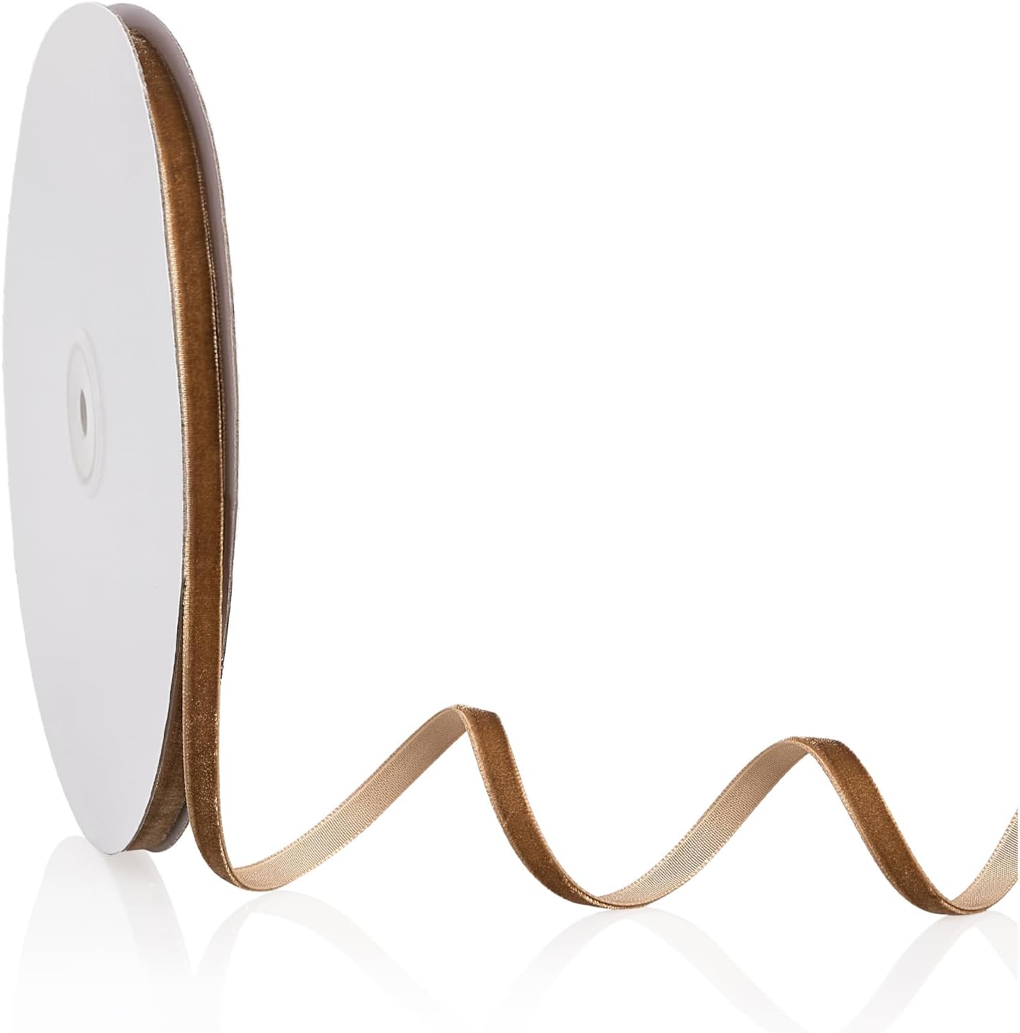 1/4" X 20 Yards Khaki Velvet Ribbon for Christmas Tree Wreath Decoration Handmade Crafts Ornaments Gift Wrapping & Bow Making