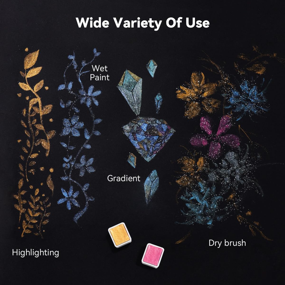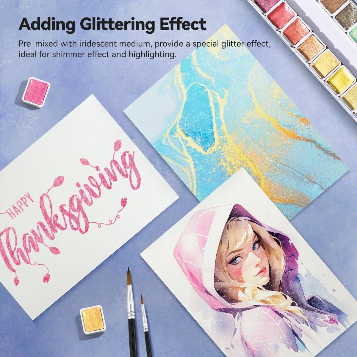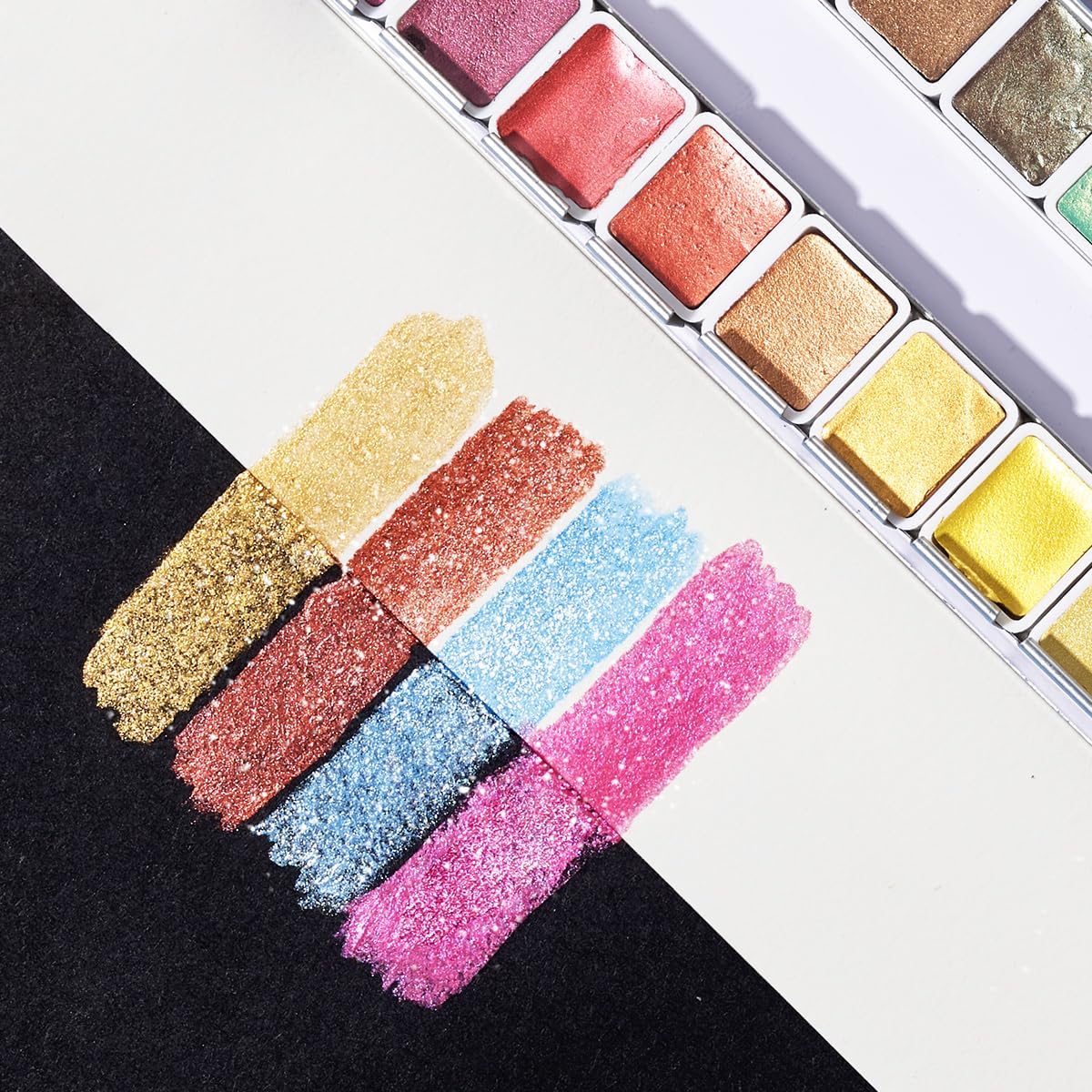 - 24 Metallic Glitter vivid colors: ultra-pure pigments that wonβt easily become muddy when mixed; high transparency; strong tinting; excellent lightfastness ratings. These top-quality paints will make your artwork stay vivid for a very long time