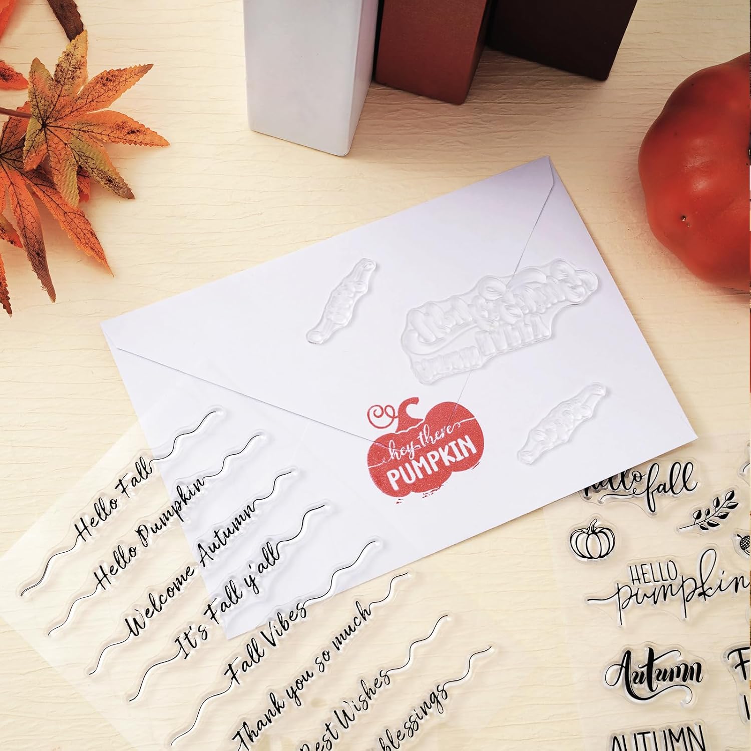 - Fall Thanksgiving Design- These clear stamps are designed with classic fall Thanksgiving theme words, such as hello fall, welcome autumn, thankful, grateful, pumpkin, delicate and elegant, full of holiday feelings, will be great decoration to match with various cards.