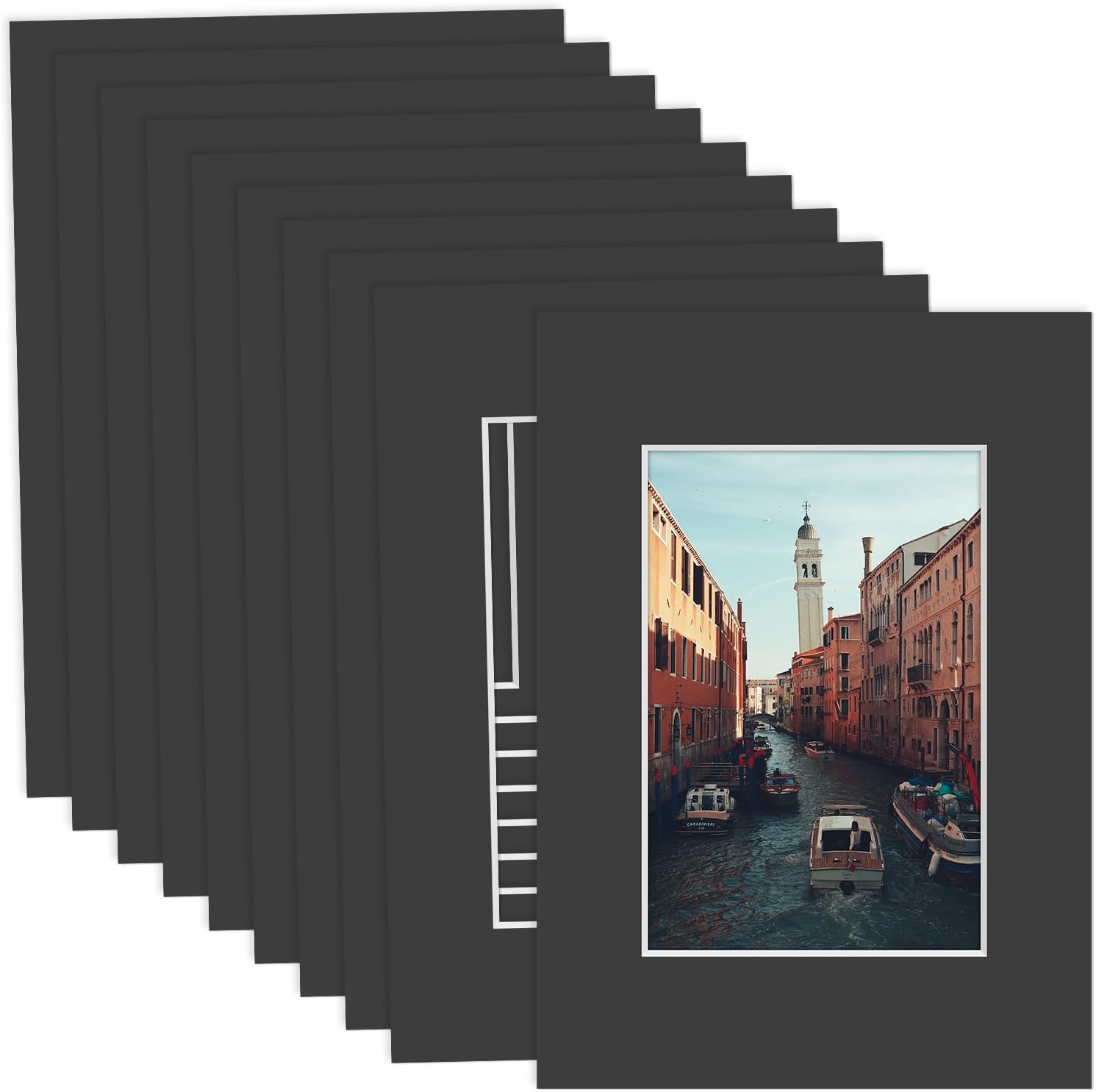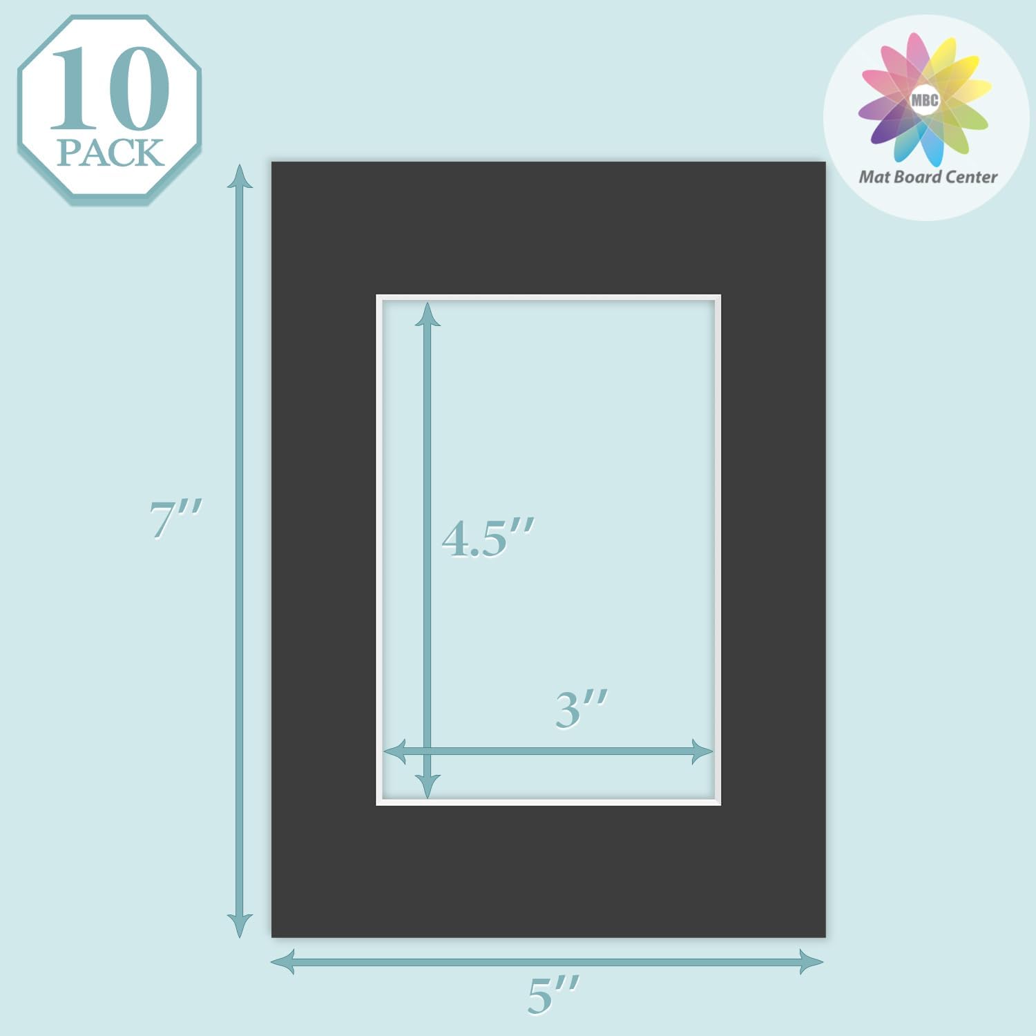 MBC Mat Board Center, 10 Pack 5x7 for 3.5x5 Black Picture Mats Frame Mattes, Bevel Cut, Acid Free, 4-ply Thickness