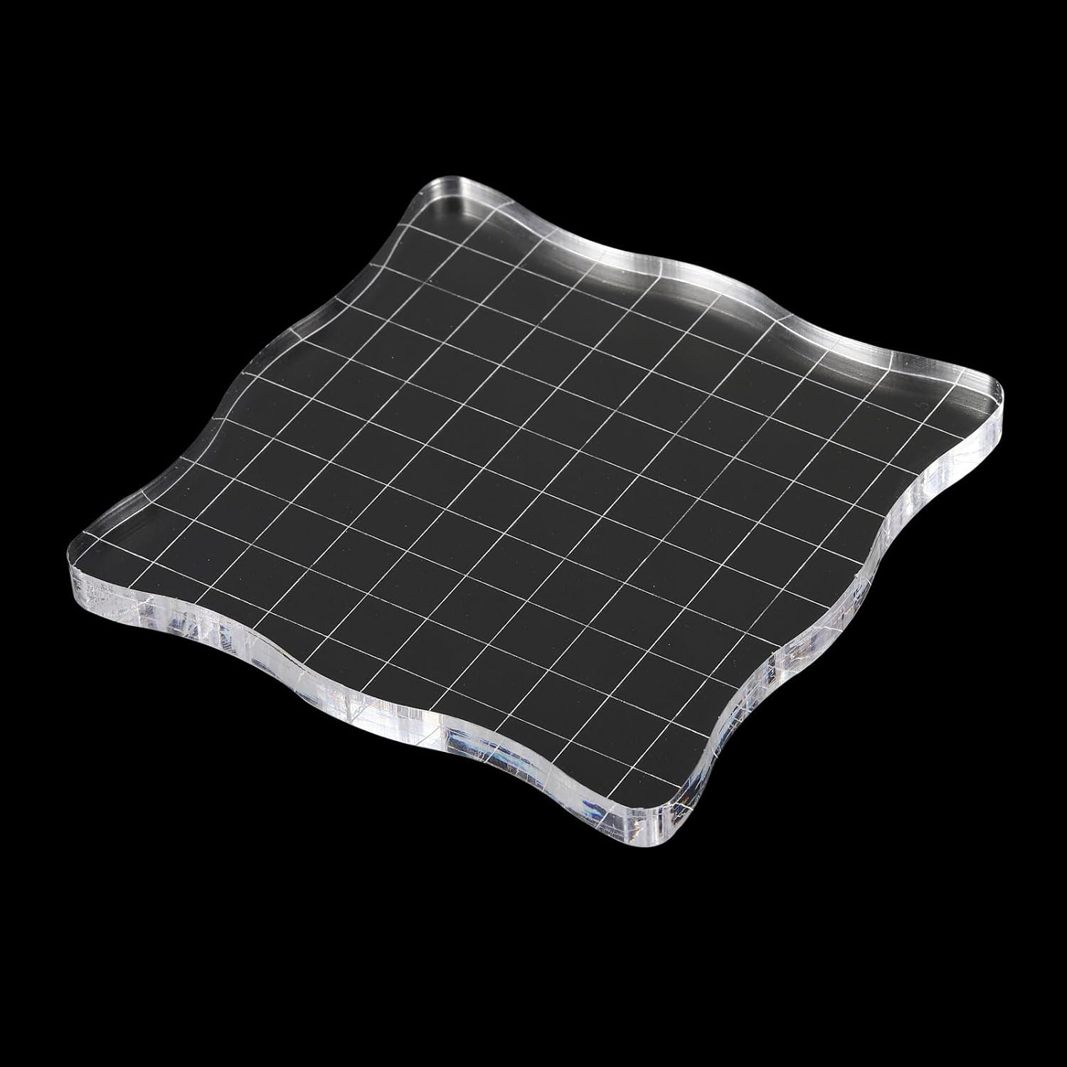PATIKIL 4" x 4" Acrylic Stamp Block, Clear Stamping Block with Grid Lines Decorative Mounting Blocks Wave for Scrapbooking DIY Crafts Card Making