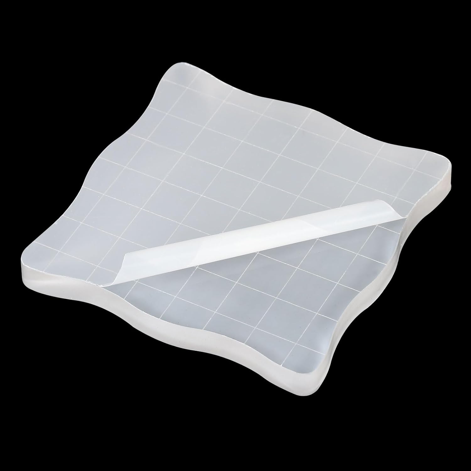 PATIKIL 3" x 3" Acrylic Stamp Block, 2 Pack Clear Stamping Block with Grid Lines Decorative Mounting Blocks Wave for Scrapbooking DIY Crafts Card Making