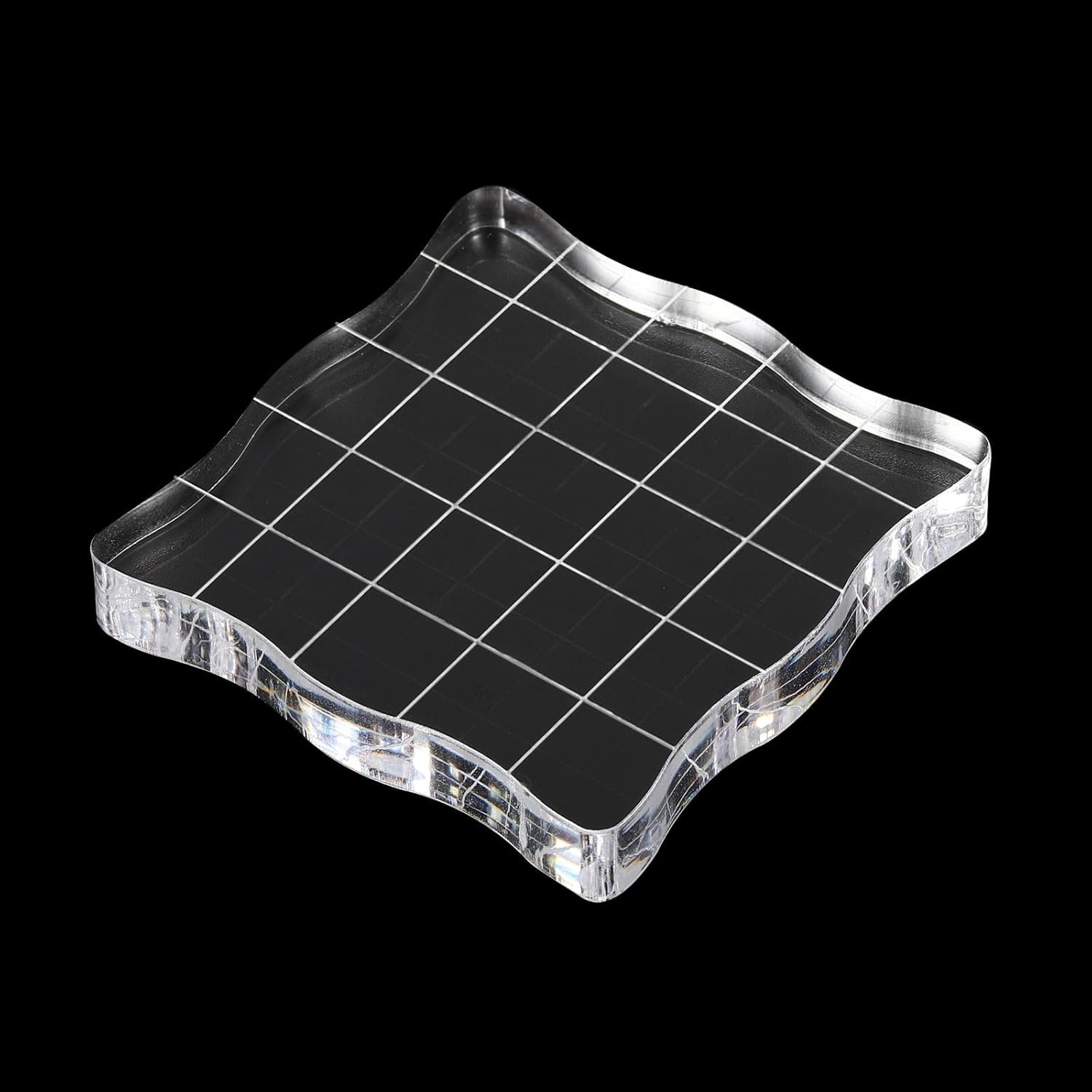 PATIKIL 2" x 2" Acrylic Stamp Block, Clear Stamping Block with Grid Lines Decorative Mounting Blocks Wave for Scrapbooking DIY Crafts Card Making