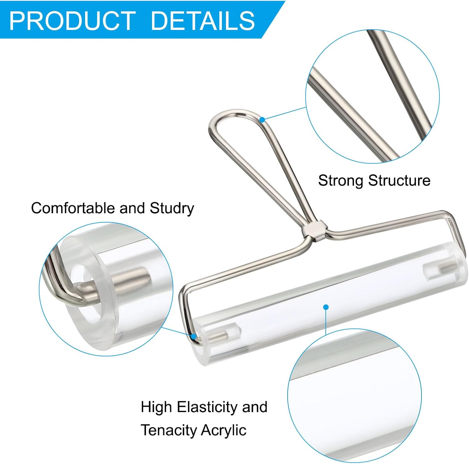 - Advantage: 1. The rolling part is made of acrylic, and the rolling surface is smooth and non-stick, and good for distributing clay, ink, or glues evenly, providing a smooth and clean finish in printing and stamping. 2. The metal handle provides a comfortable and sturdy grip during use.