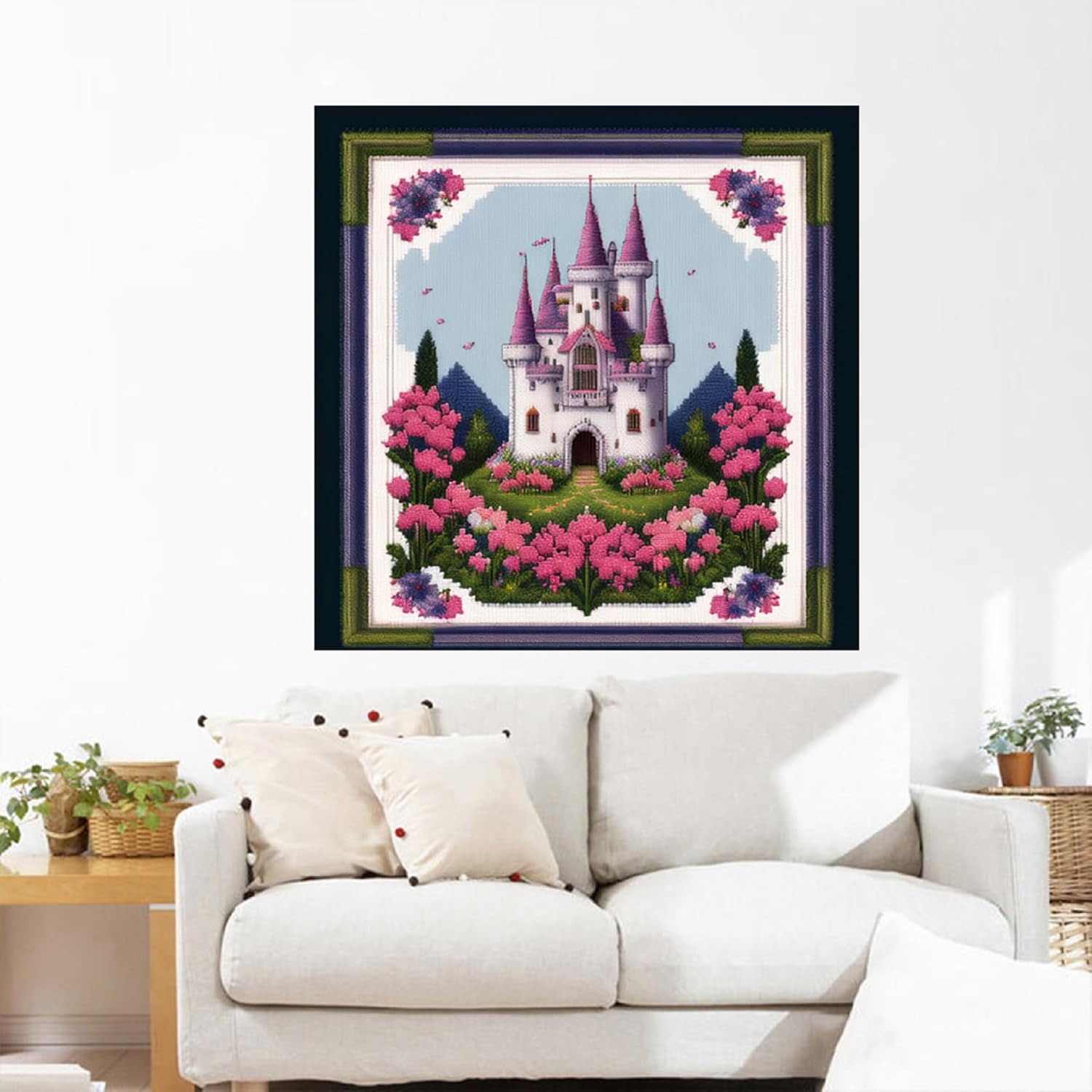 Joyhoor Cross Stitch Kits for Beginners Stamped Cross-Stitch Supplies Needlework preprint Embroidery Kits for Adults DIY Needlepoint Kits Embroidery Patterns 11CT-Colorful Castle 17.7x17.7 inch