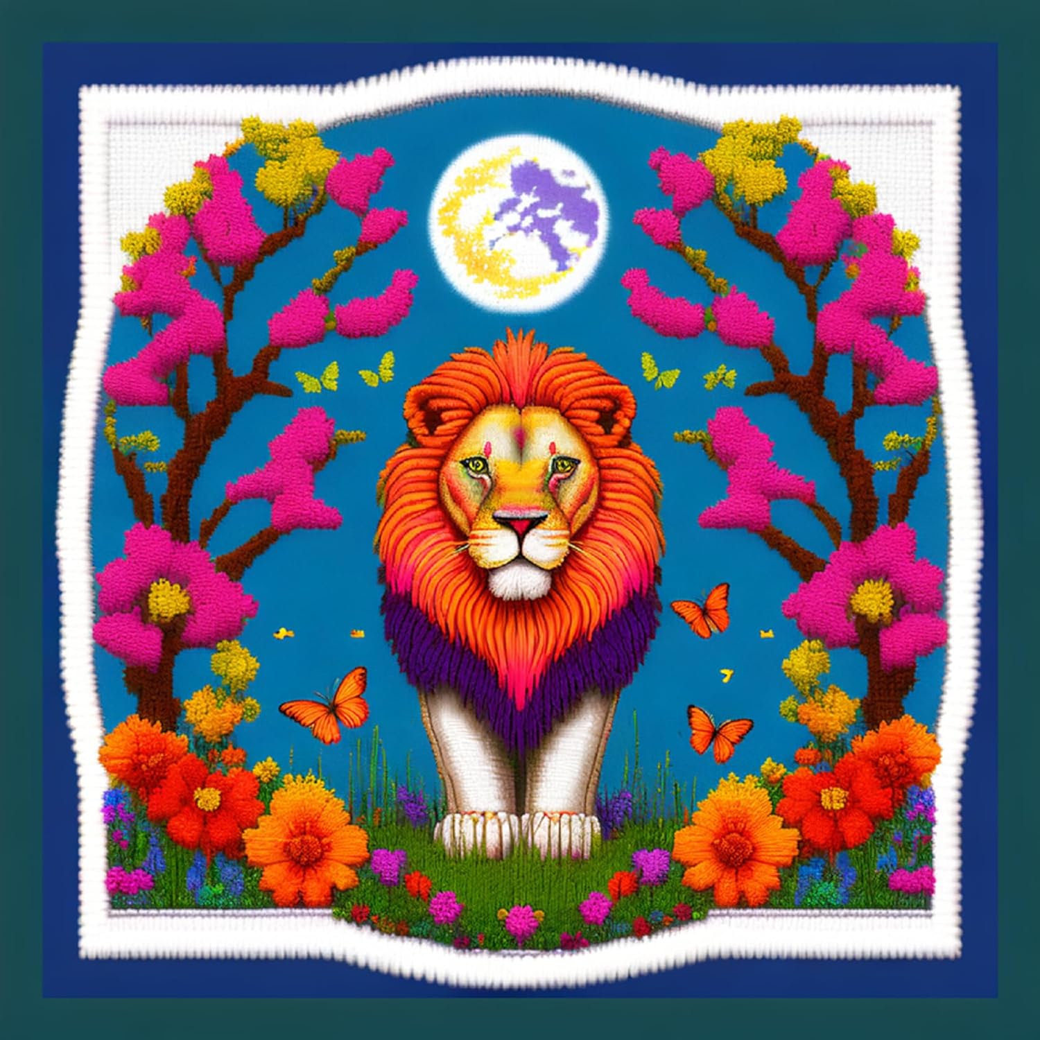 Joyhoor Cross Stitch Kits for Beginners Stamped Cross-Stitch Supplies Needlework preprint Embroidery Kits for Adults DIY Needlepoint Kits Embroidery Patterns 11CT-Colorful Lion Moon 17.7x17.7 inch