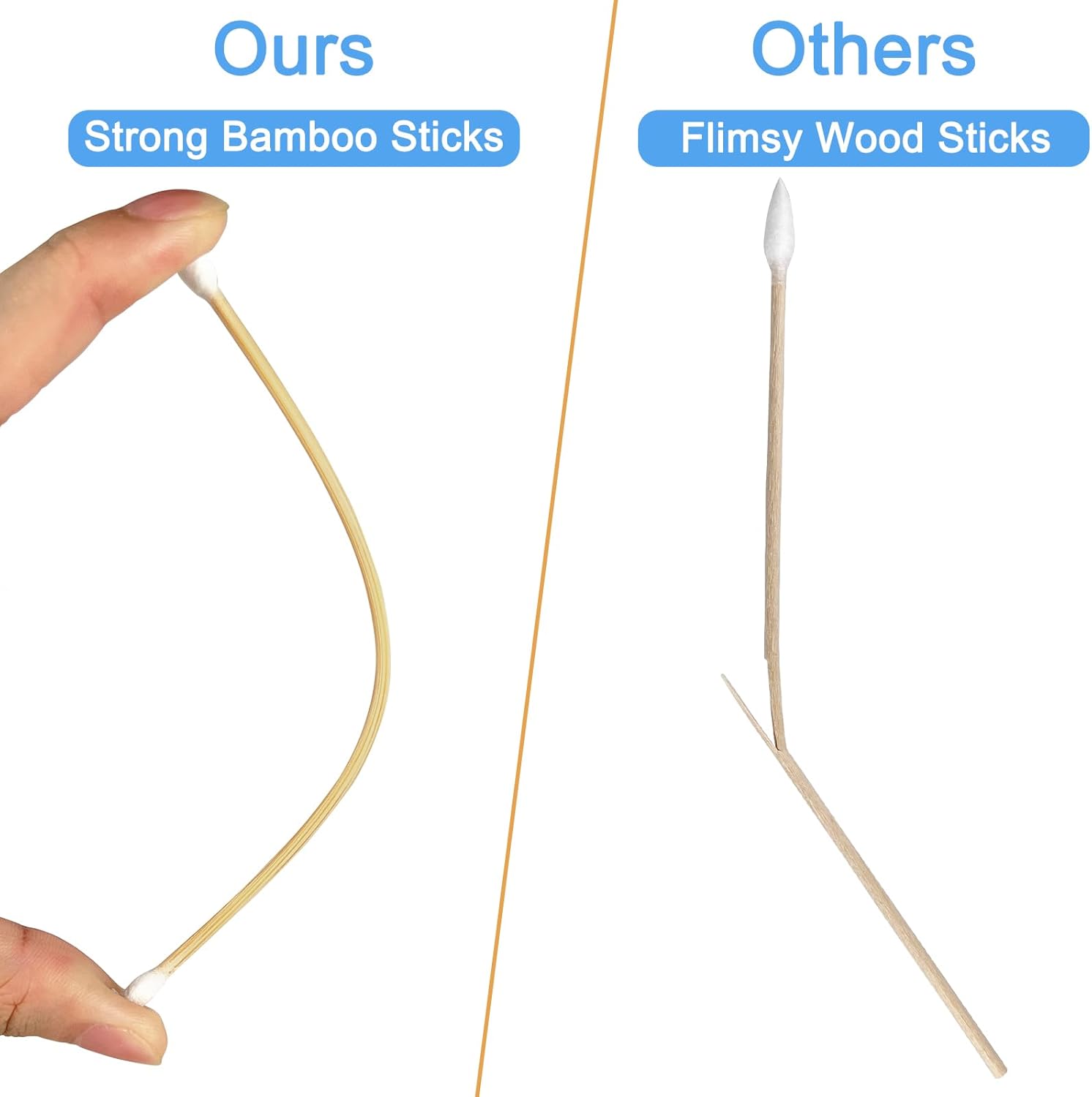- 6-Inch Strong Bamboo Handles: Extra-long bamboo sticks gun swabs provides excellent reach for tight spaces, nooks, and grooves in pistols, rifles, handguns, and shotguns. Sturdy and bend-resistant, our bamboo stems outperform plastic or paper alternatives