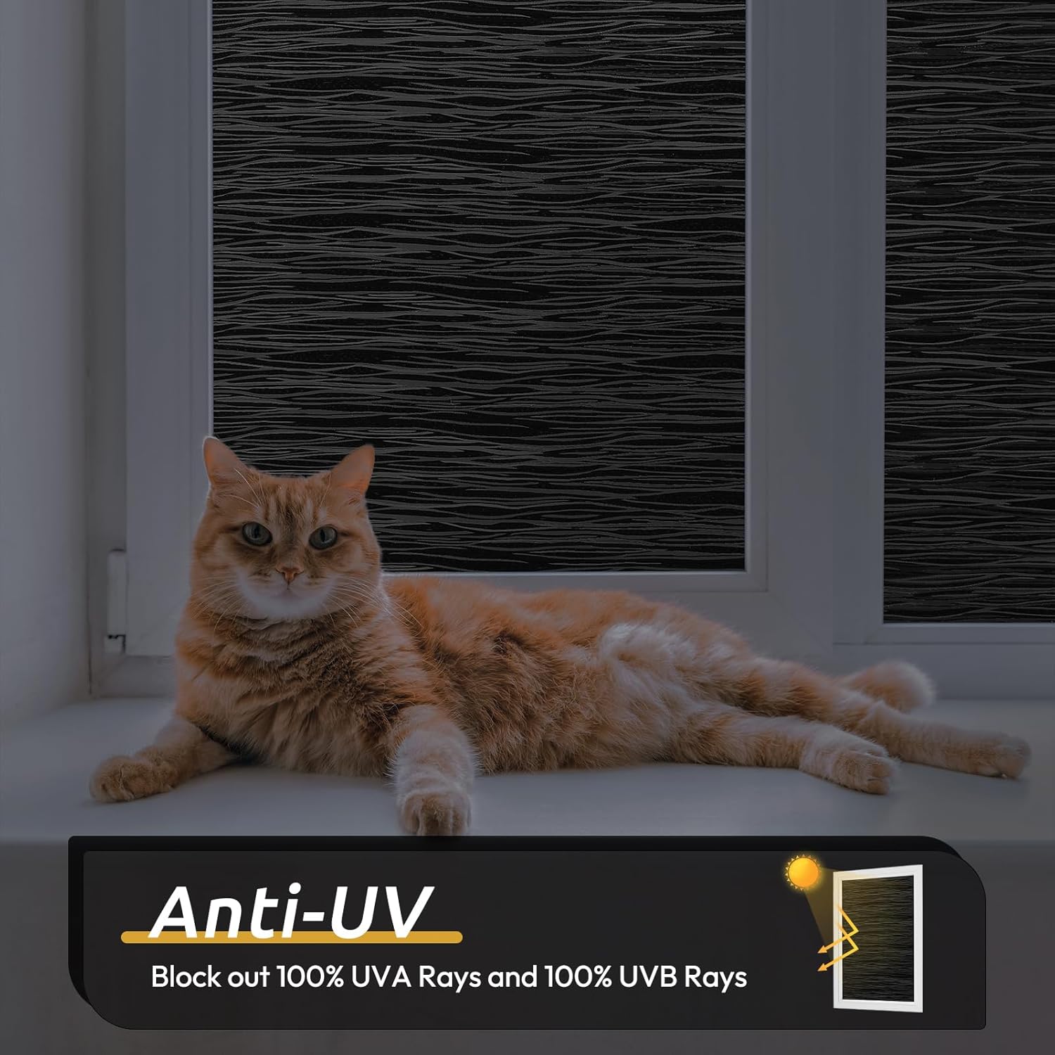 rabbitgoo Blackout Window Film, Sun Light Blocking Window Black Out Cover for UV Reduction, Removable Tint Room Darken Heat Control Frosted Glass Sticker for Home, Black, 35.4 x 78.7 Inches