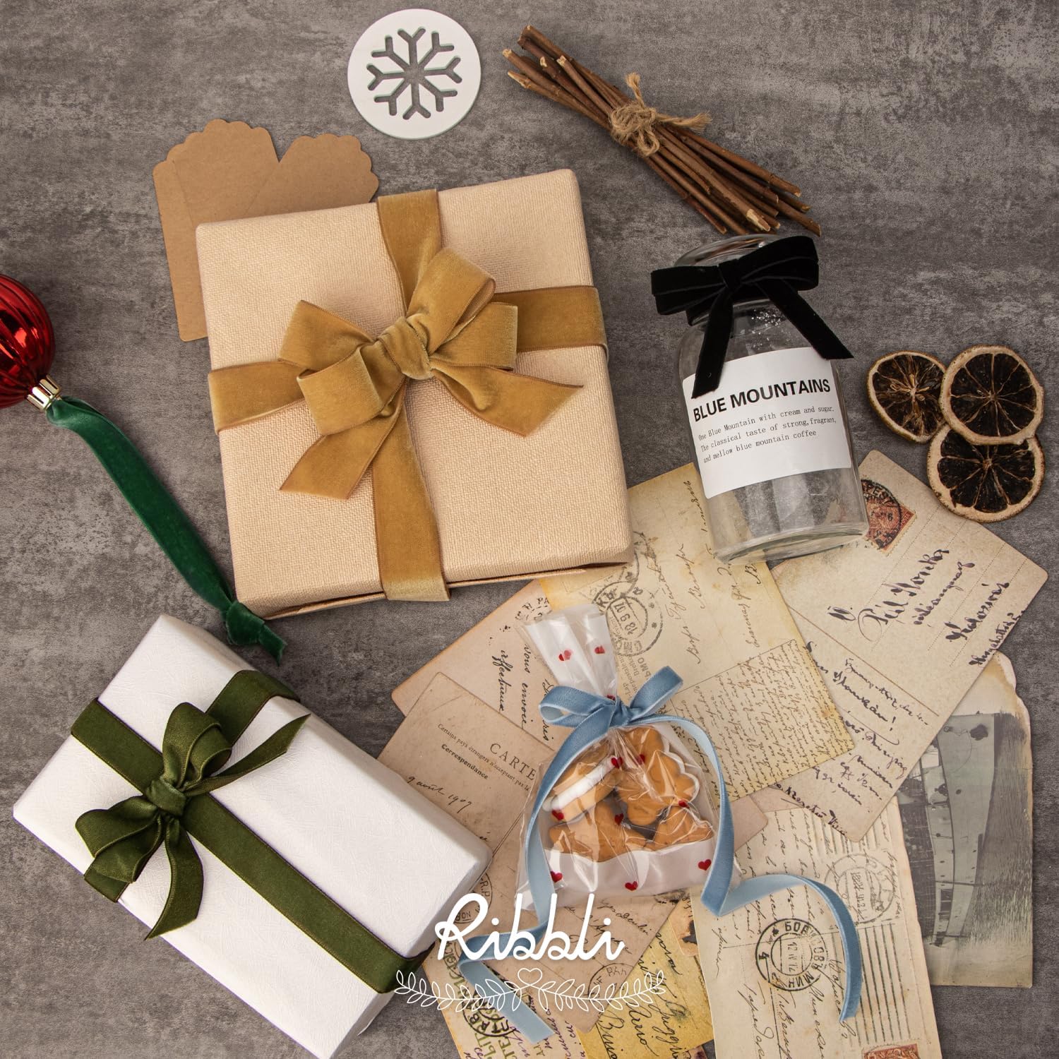 Ribbli Polyester Moss Green Velvet Ribbon,5/8 Inches Continuous10-Yard Spool,Christmas Ribbon for Gift Wrapping,Floral Bouquets, Home Decor