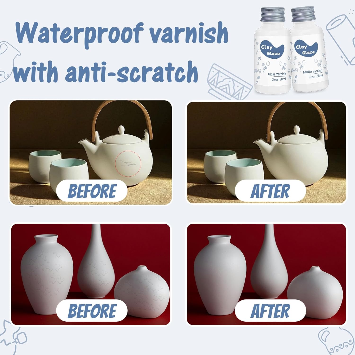 Air Dry Clay Glaze, Clay Varnish for Air Drying Clay, Clear Acrylic Varnish for Craft Pottery Waterproof & Gloss Finish