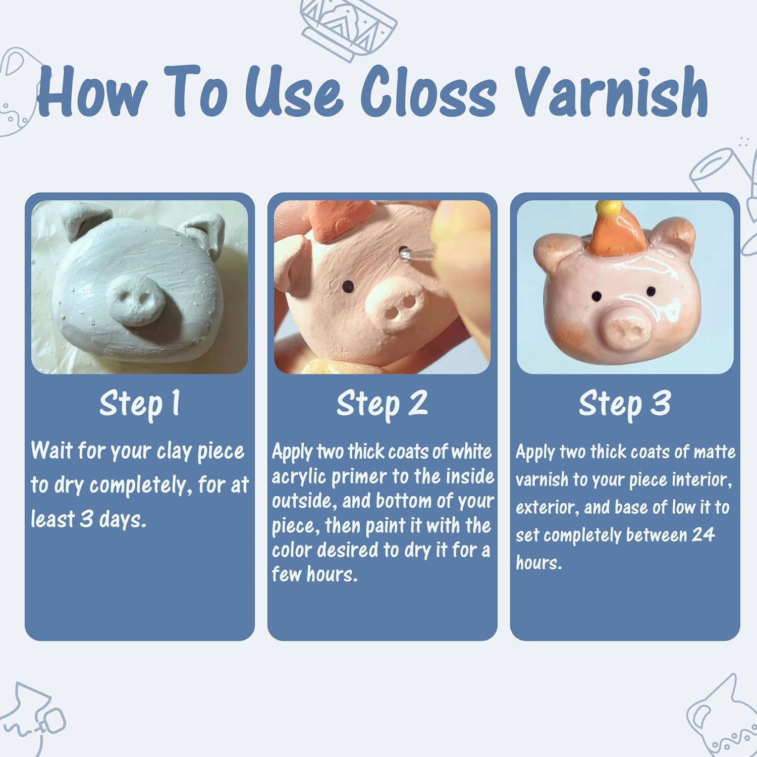 - Designed for Air Dry Clay: Still worried about your airdry clay creations being poorly watertight and easily scratched? Try our specially designed clay varnish for air-drying clay. The air-dry clay polymer clay glue will help your crafts to be waterproof and scratch-resistant, adding a gloss look that you will love
