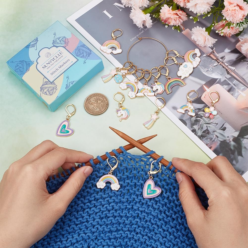 SUNNYCLUE 1 Box 20Pcs Knitting Stitch Markers Crochet Rainbow Colorful Leverback Charms Cute Crochet Markers for Knitting Weaving Sewing Needleworks Women DIY Craft
