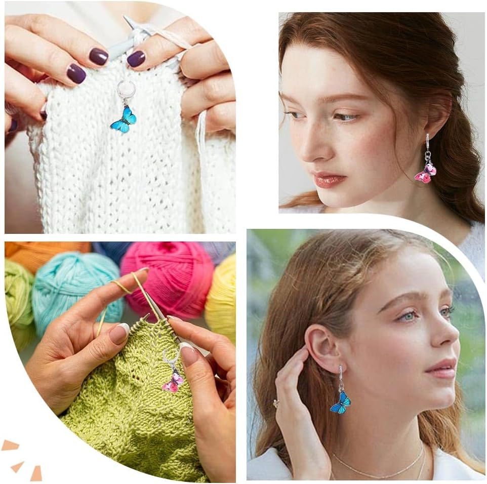 - [FUNCTION]: Butterfly charms knitting stitch markers are helpful for sewing, weaving and knitting etc. The markers are must have tools to reposite where the knitting pattern starts and ends, to know where you need to repeat or change weaving. Just need to clip the charms on knitting wool to mark it. Removeable and able to be reused.