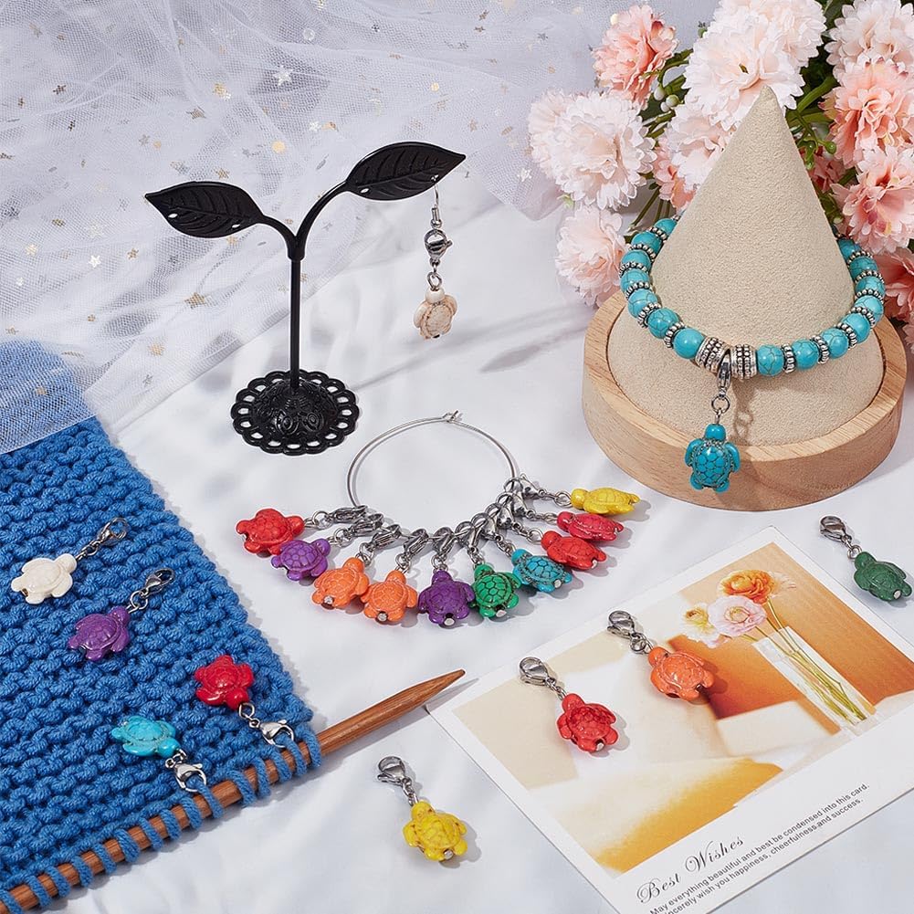 SUNNYCLUE Turtle Beads Stitch Markers, 20Pcs Crochet Knitting Markers with Lobster Clasp Charms for Sewing Quilting