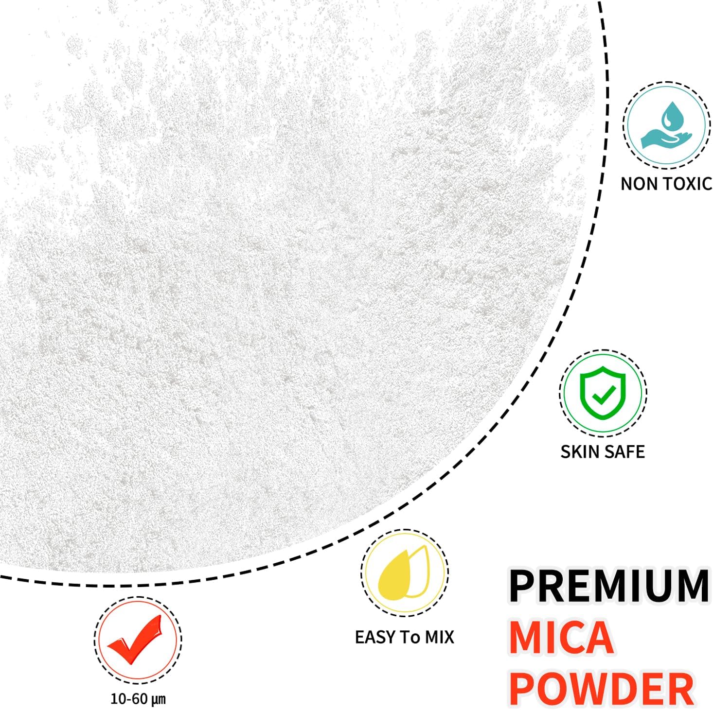 - 【Widely Use】This Premium mica powder are very fine particle pigment that can work well with epoxy resin, soap making, makeup, cosmetics, slime, nails, bath bombs, etc.