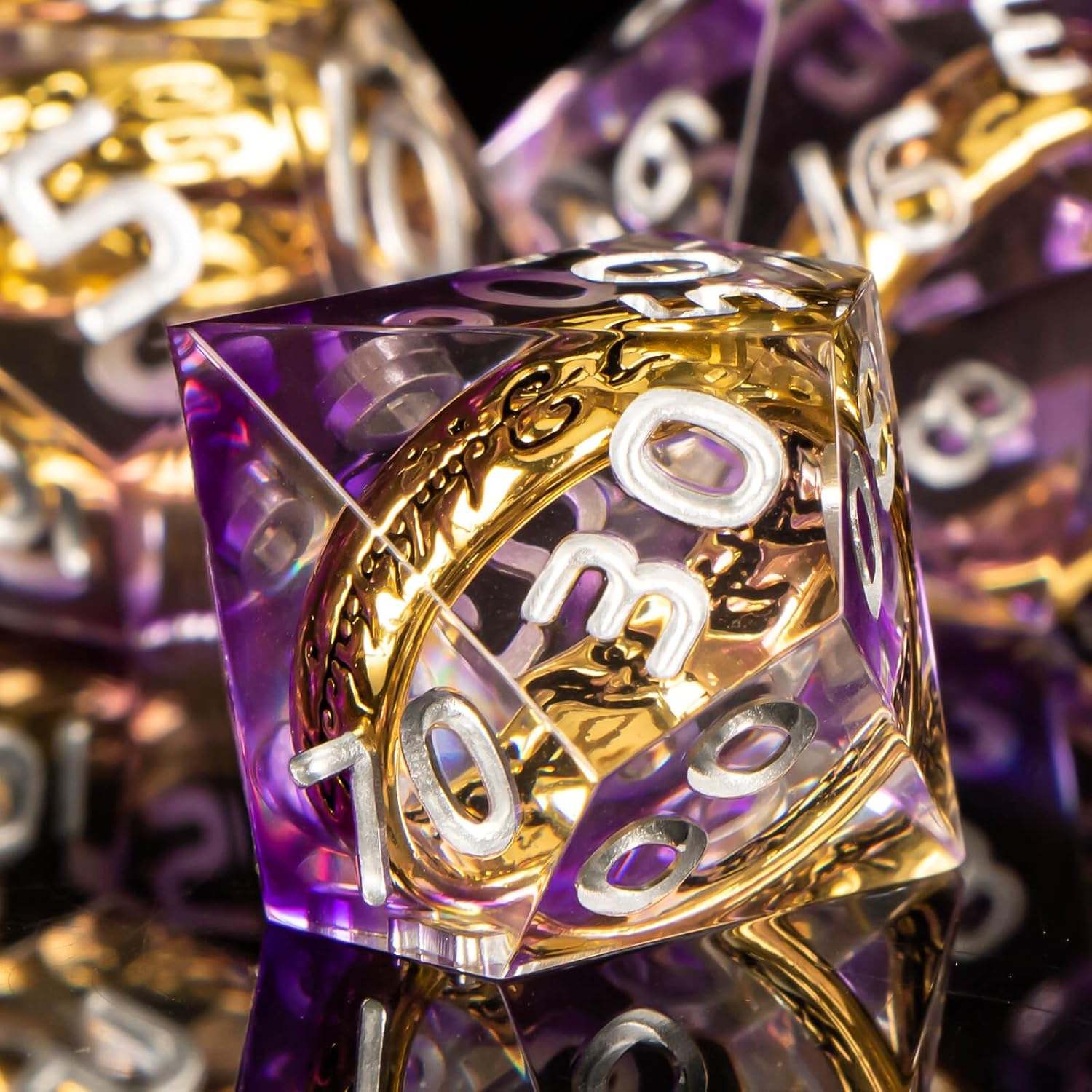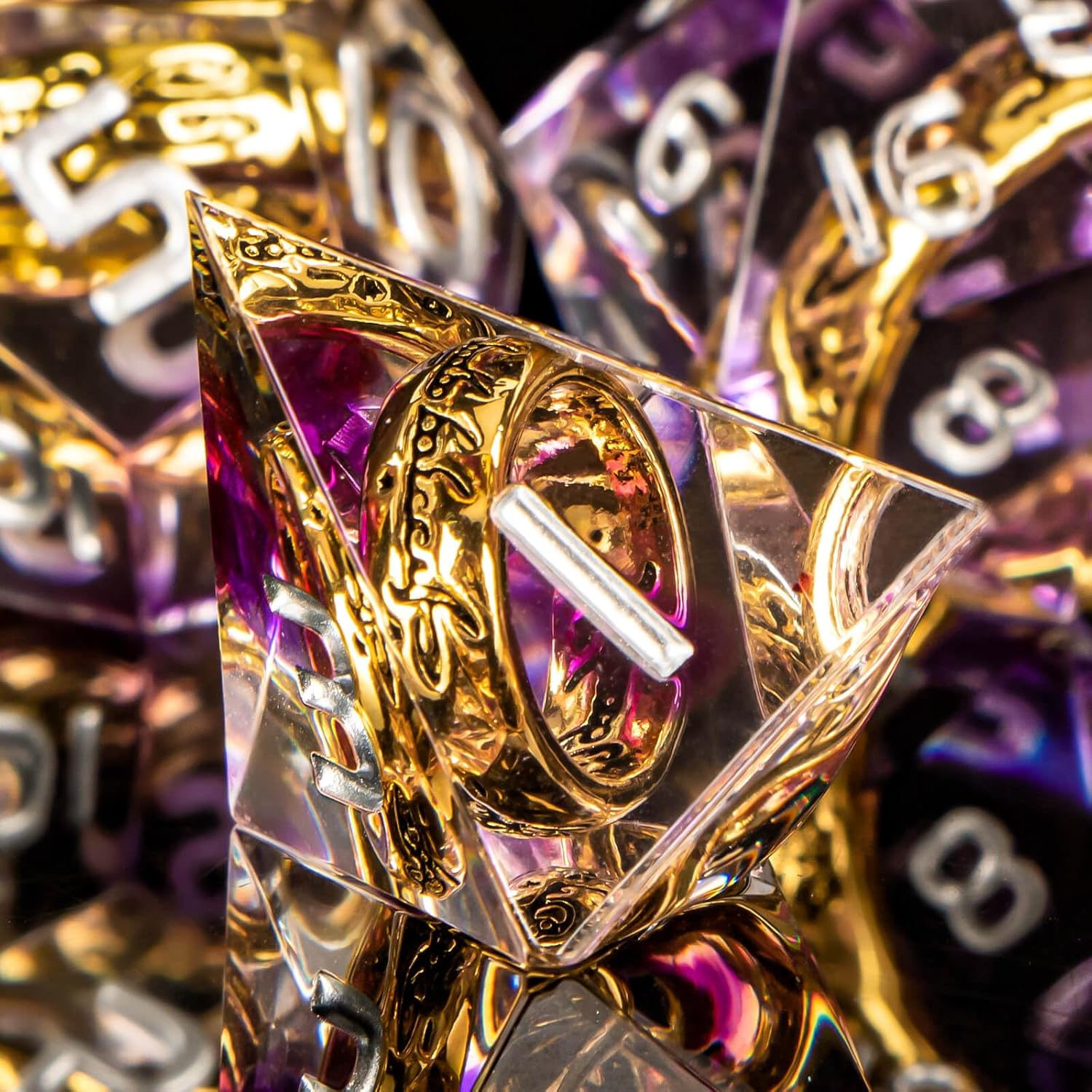 OUKELANWO Magic Lord Rings DND Dice Set with Box, 7Pcs Resin LOTR D&D Dice Set for Role Playing Game, Purple Dungeons Dragons D and D Sharp Edge Dice D20 D12 D10 D8 D6 D4