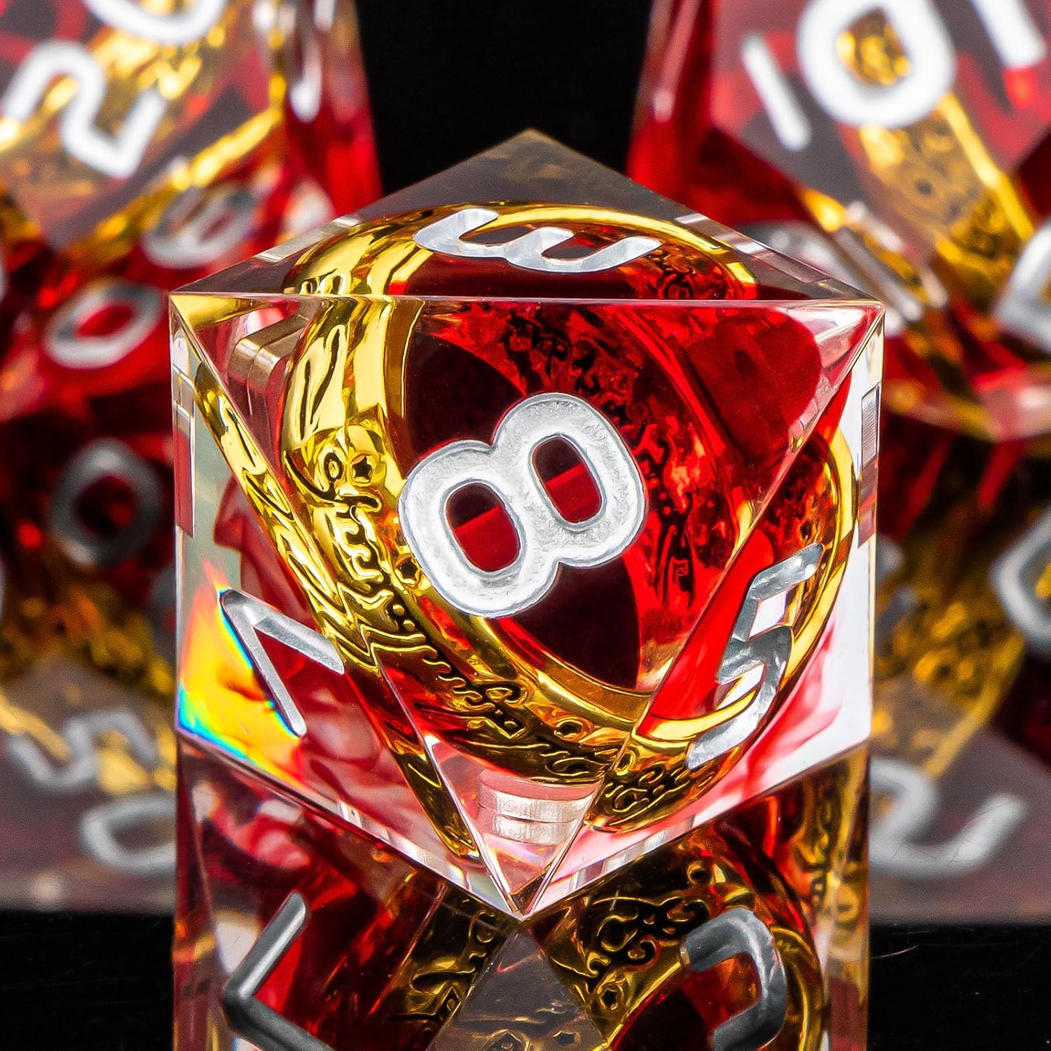 - Ring Dice set: Dice with ring theme, each sharp dice is hand sanded and polished. The numbers on the dice are clear and easy to read, with perfect details and well-made. The d and d dice will get a lot of compliments and envy
