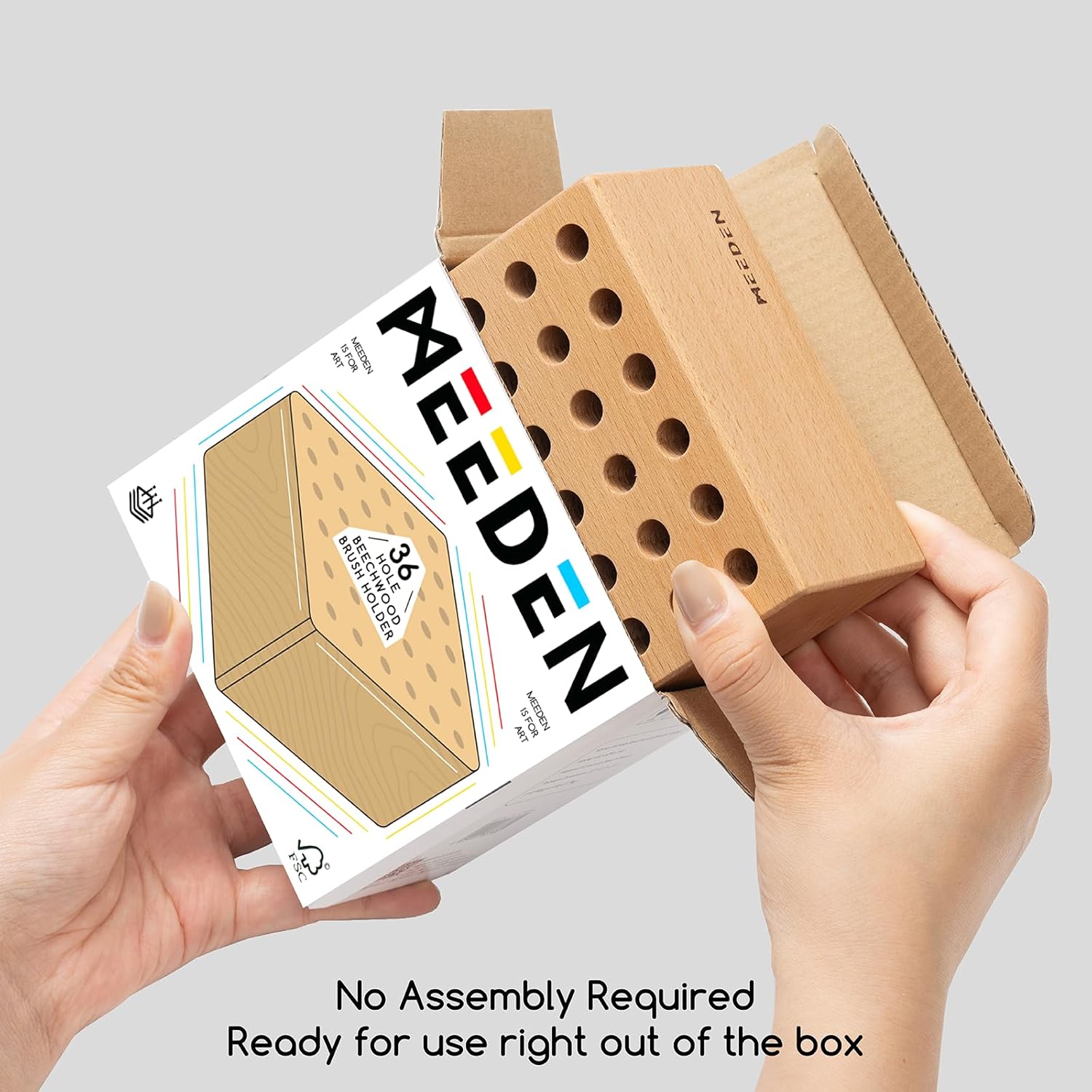 - [100% Assembly-Free] The MEEDEN wood block brush holder requires no assembly. Simply place your brushes in it asap you receive it. Say goodbye to mess and hello to tidiness and happiness every day with just one step!