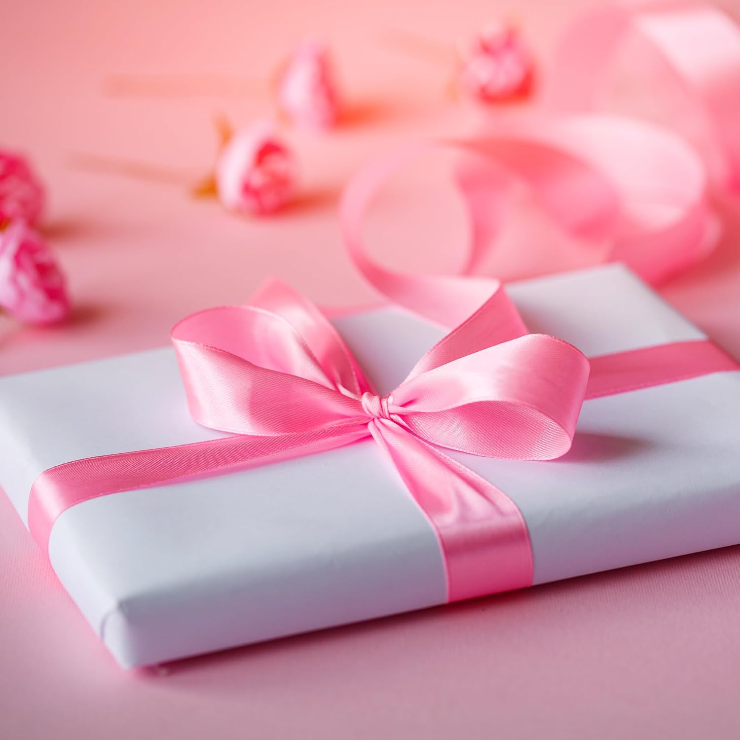 LIUYAXI Pink Stain Ribbon, 5/8" X Continuous 50 Yards, Double Faced Fabric Ribbon Perfect for Gift Wrapping Wedding Birthday Party Christmas Hair Floral Craft Baby Shower