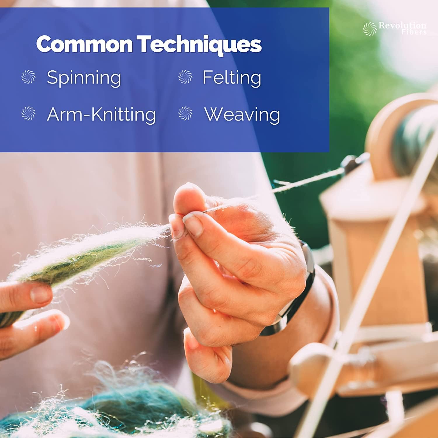 Revolution Fibers Merino Wool Combed Top | 1 lb Premium Wool Roving | 22 Micron, Best Merino Wool for Spinning, Tapestry, Needle Felting, Big Yarn Roving and Wall Hangings (Lightning White)