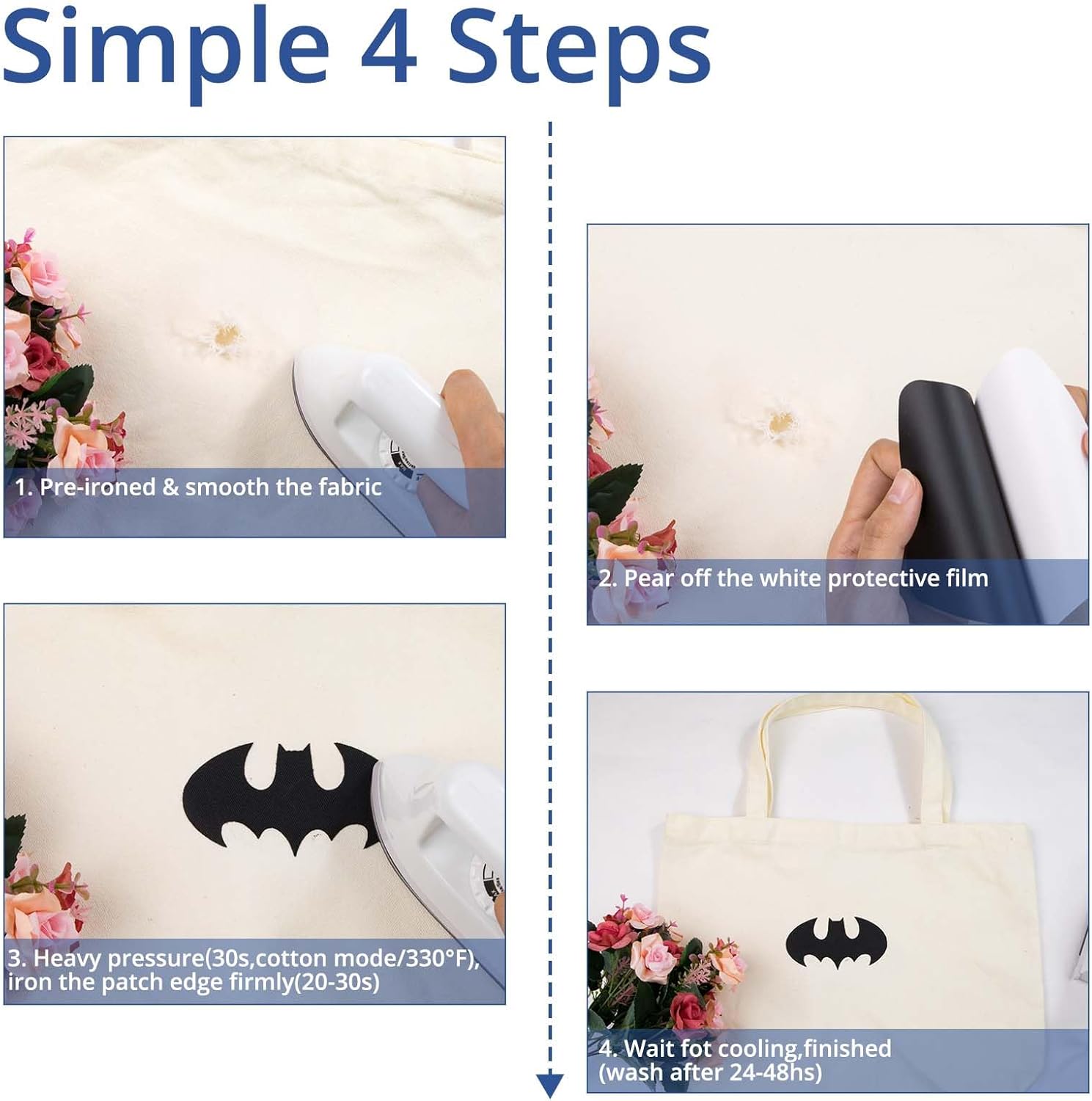 - 【EASY TO USE & INSTRUCTIONS】 Easy steps to follow. The iron on patches for clothing is very nicely for crafters. You could use this iron on patches for clothing to decorate,repair, and reinforce the garments. The iron on patches could directly be cut into the shape and pattern you want. CAUTION:pay more attention on the edges avoiding curling when applying the fabric patch