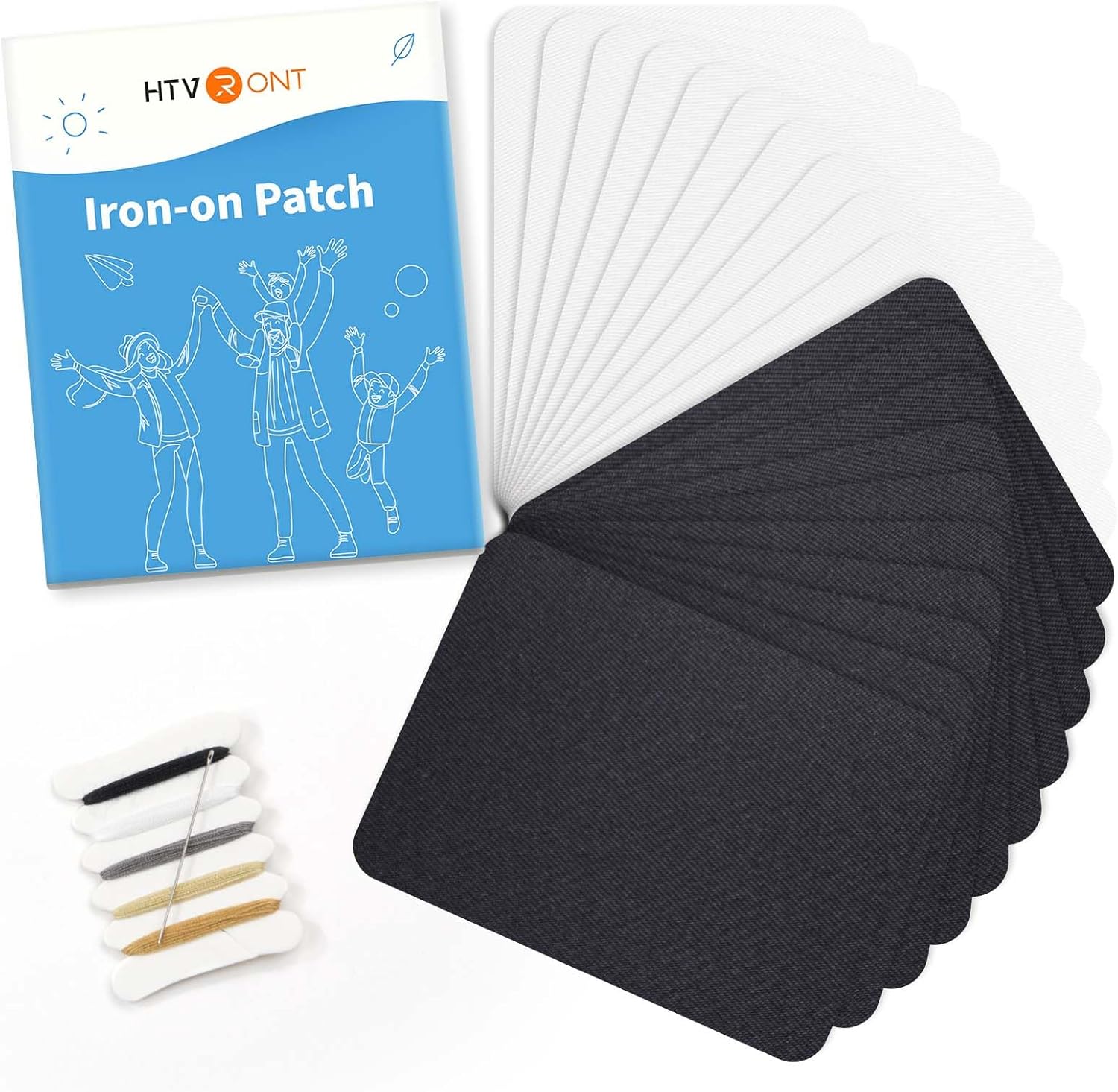 HTVRONT Iron on Patches for Clothing Repair, Fabric Patches for Clothes, Repair Decorating Kit, Iron on Patches (Black&White)