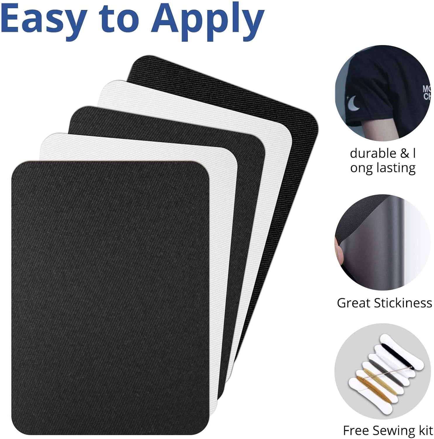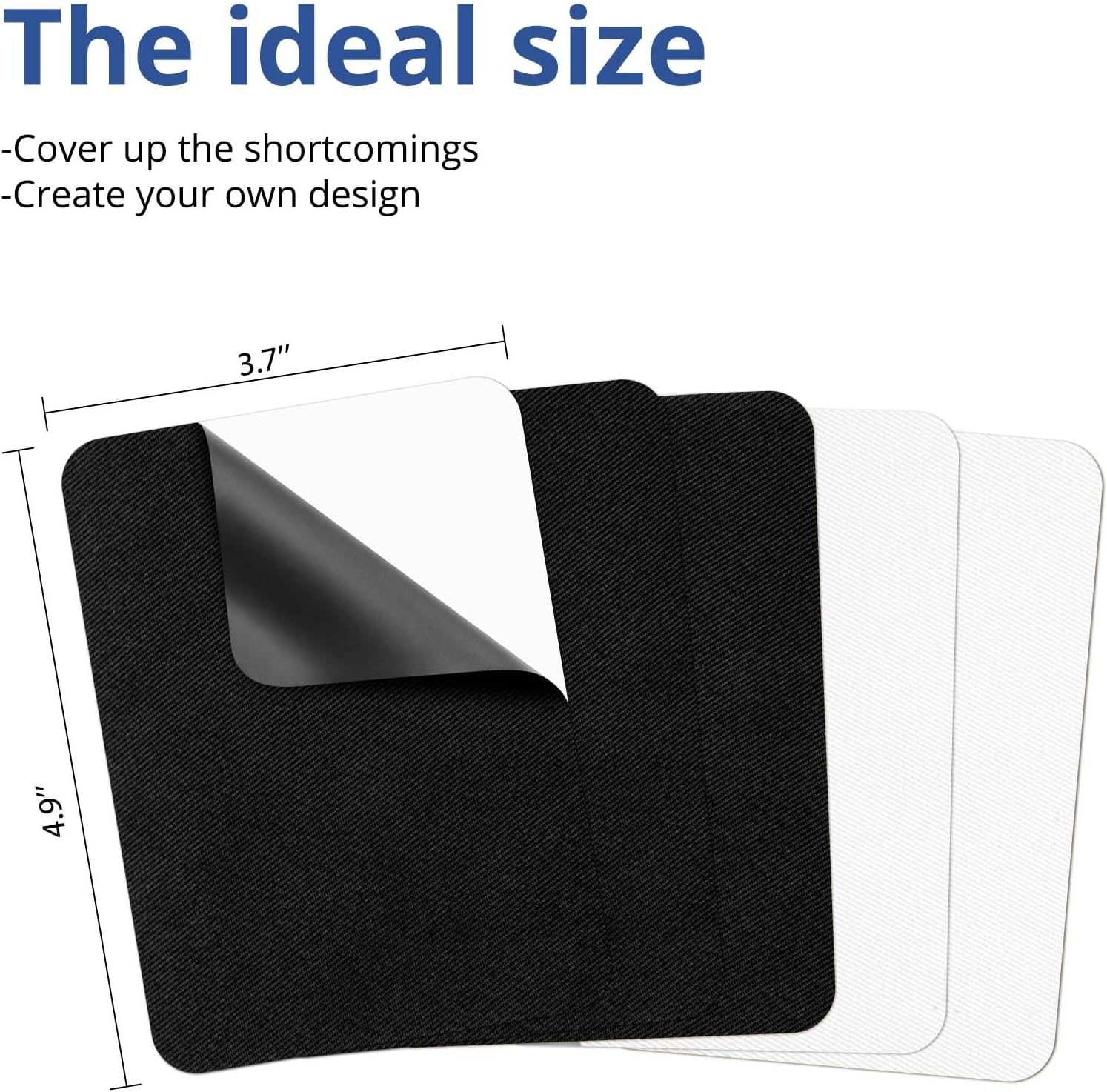 - 【DIMENSIONS & COLORS】 Compared with other iron on patches,our size of iron on patches for clothing :20 pack(black,white)-3.7" by 4.9" will help to hide the shortcomings of both small and large holes and enough to create your own design. 20 iron on patch are able to almost perfectly match your different clothes, which you could barely tell.The free sewing kit is included for ensuring the bond firm