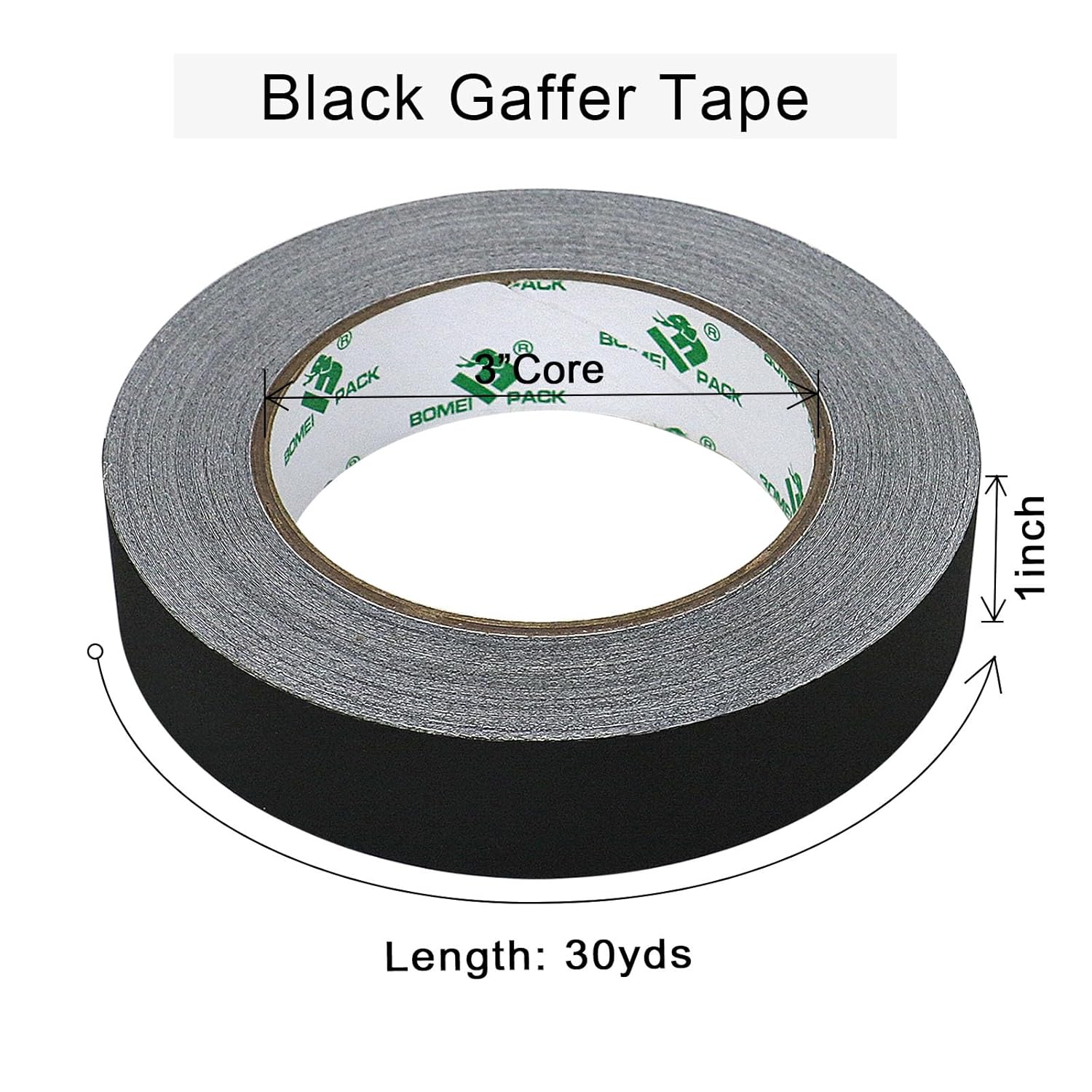 - A LITTLE TRY GOES A LONG WAY: 1 roll of 1inch x 30yds black gaffer tape. Not familiar with the wonderful use of this tape? You can first buy a roll to try, whether it meets your needs. This tape is versatile and will not let you down