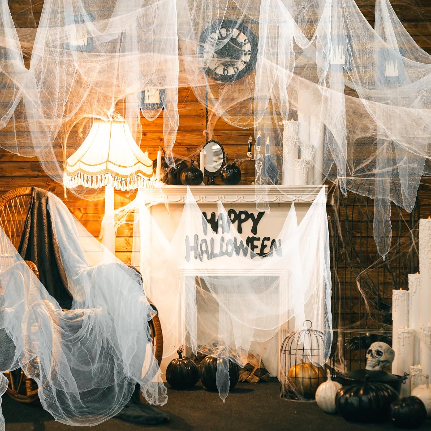 - Horror Large Halloween Cheese Cloth: this large Halloween cheese cloth measures 85 x 197 inches, making it an ideal decoration for a fantastically spooky Halloween party; The size alone is commanding, covering a large area with a ghostly vibe, the spectral black color adding to the eeriness; You can entangle your guests in a web of horror and make your party the talk of the festival