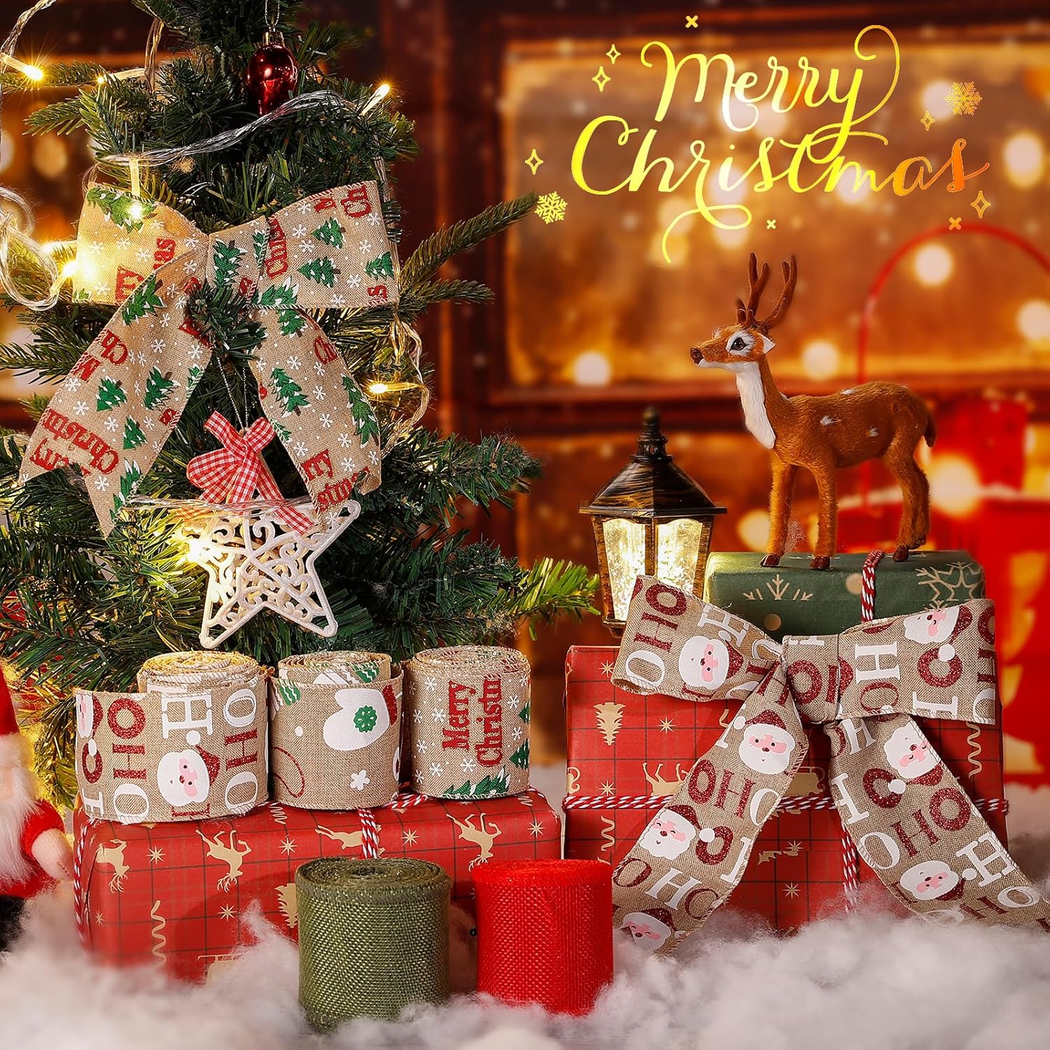 - 【Seasonal Vibe Strong】Whether for gift wrapping, DIY, or home decor, these burlap fabric ribbon rolls will add color to your work. Santa Claus, Christmas trees, mittens, and other patterns are full of rich holiday atmosphere and can be perfectly suitable for Christmas.