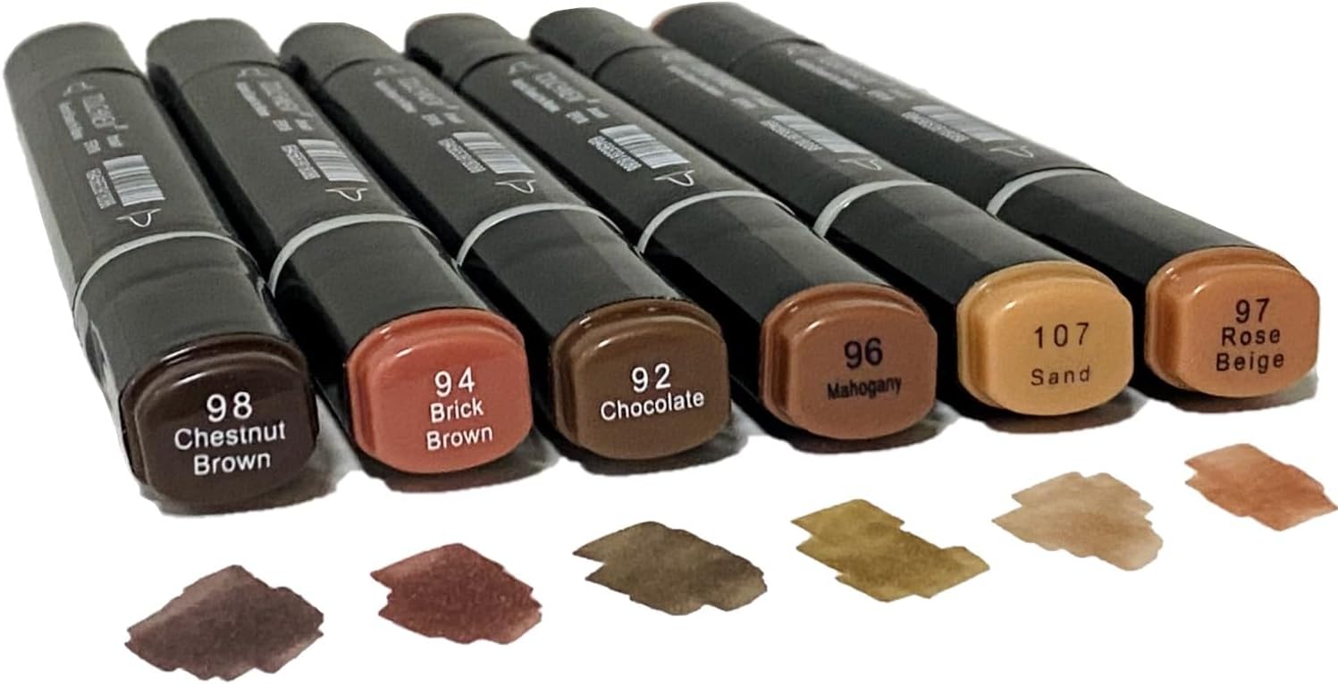 6PCS Skin Tone Markers Set, Double Tipped Soft Fine Tips and Brush Art Marker Set for Artist Adults Coloring Sketching (Deep)
