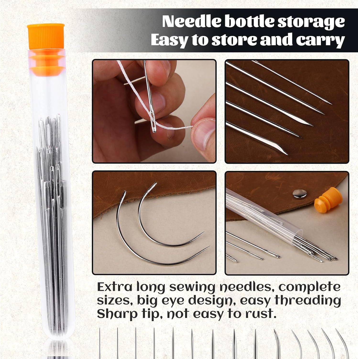 - Upholstery Repair Kit Includes: Upholstery thread kit includes leather sewing waxed thread and upholstery repair needles for sewing, different types of leather sewing needles, such as curved mattress needles, Glover's needles, carpet needles, sack needles, and sail needles. Great leather repair sewing kit for leather crafting.