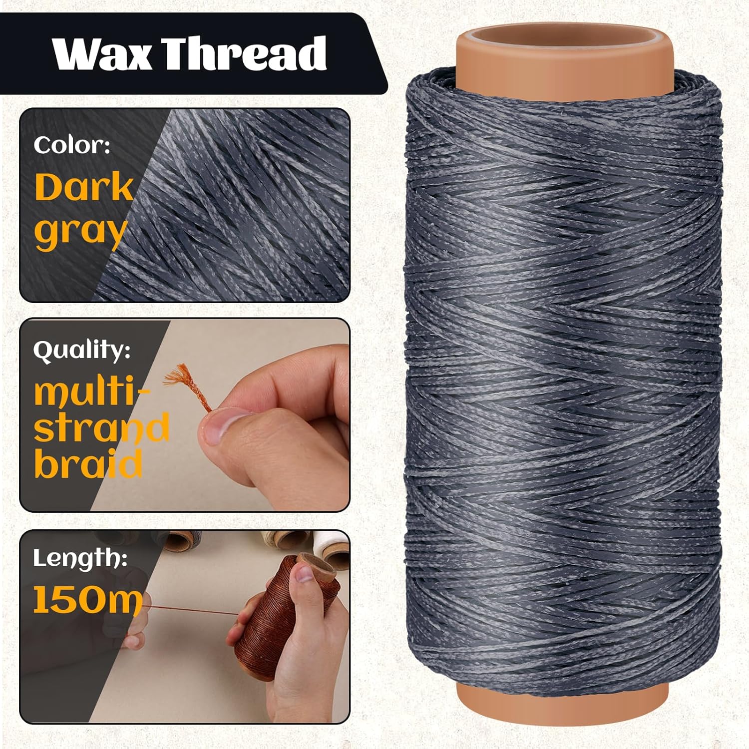 Tikjiua 492ft Upholstery Needle Threads, 164Yards Leather Waxed Thread with Curved Needles, Upholstery Repair Leather Thread and Needles for Canvas Carpet Sofa Furniture Repair