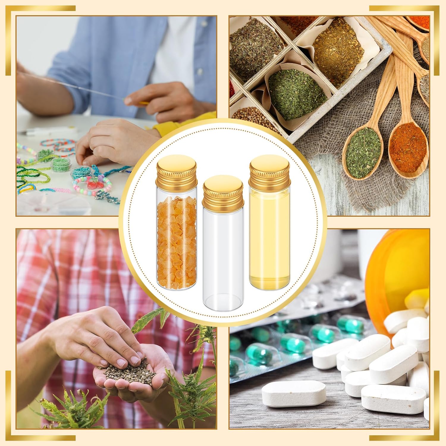 100 Pcs Small Clear Vials Spice Mini Jars with Lids Mini Glass Bottles with Screw Aluminum Metal Caps Tiny Jars Sample Containers for Powder Cream Cosmetic Jewelry Wedding (15 ml,Gold Caps)