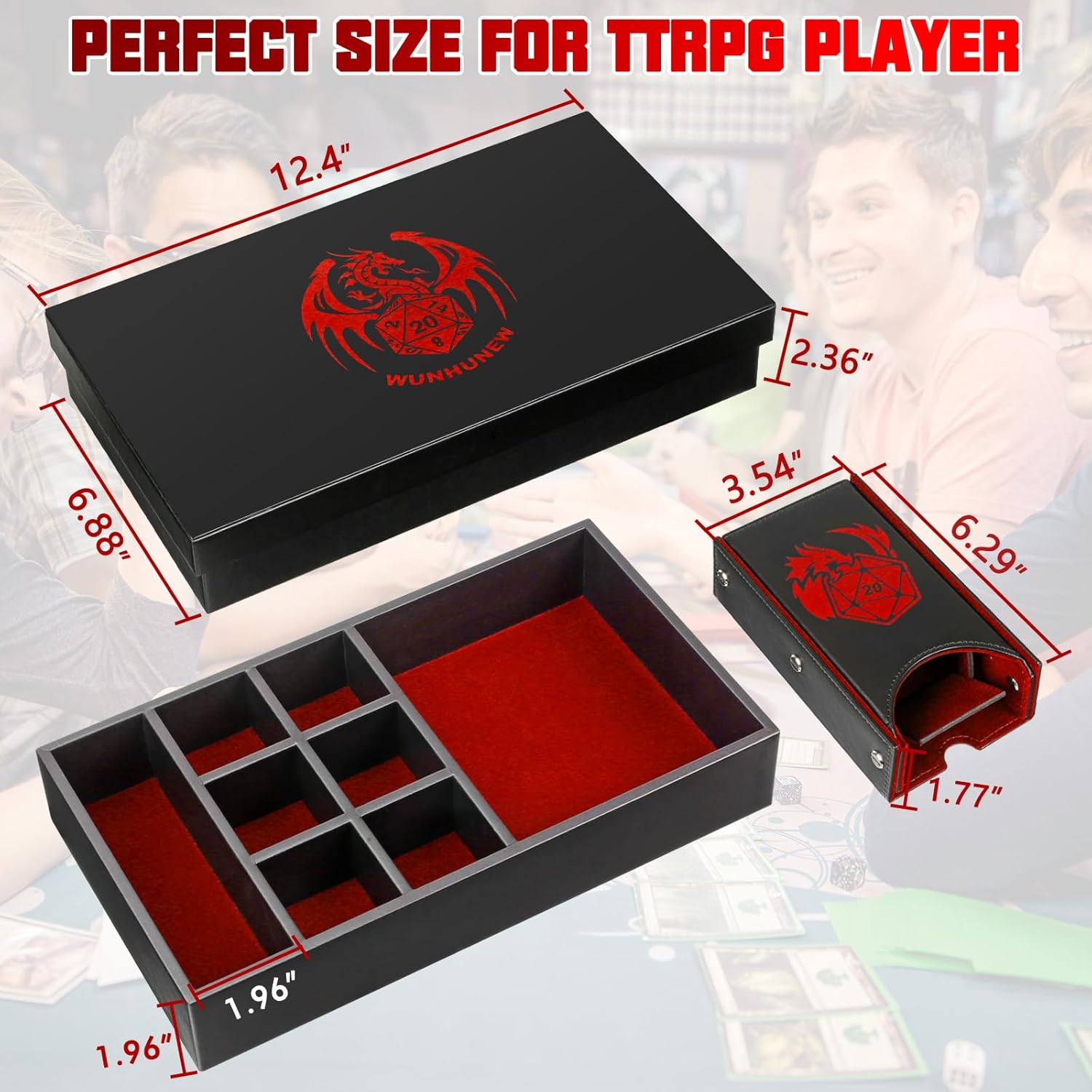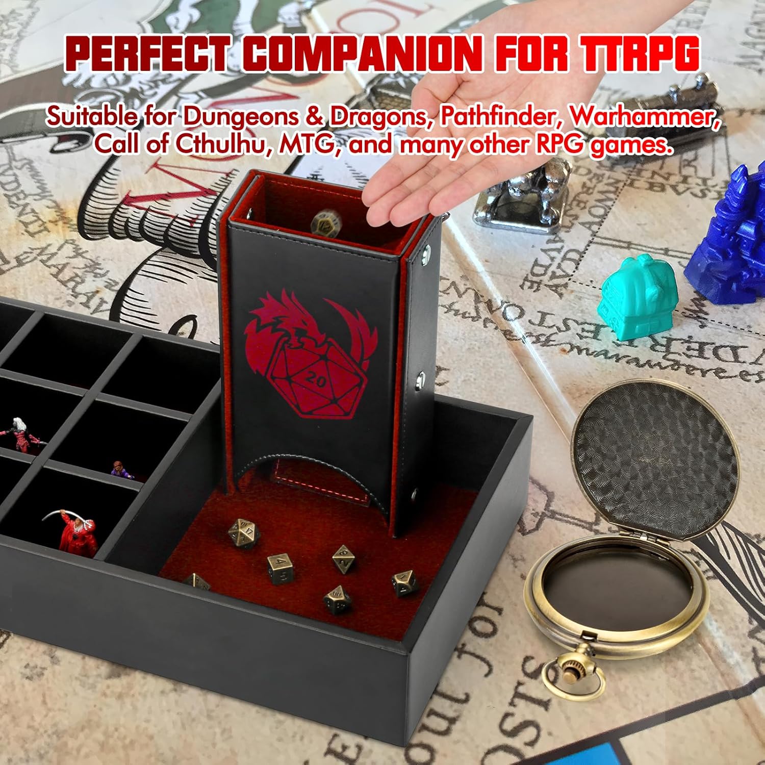 DND Dice Tray & Tower Storage Box, 4 in 1 D&D Dice Holder Case (Dice Rolling Tray, Dice Roller Tower, Dice & Miniature Storage), Great RPG Accessories Gifts for Dungeons and Dragons MTG DM & Player