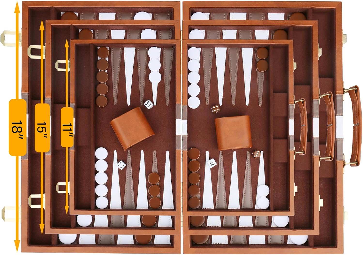 - CLASSIC BOARD GAME - This classic backgammon set is the perfect set for beginners and advanced players alike and includes everything you need to play; Perfect for game night, parties or holiday gatherings,it's also a great Christmas surprise.