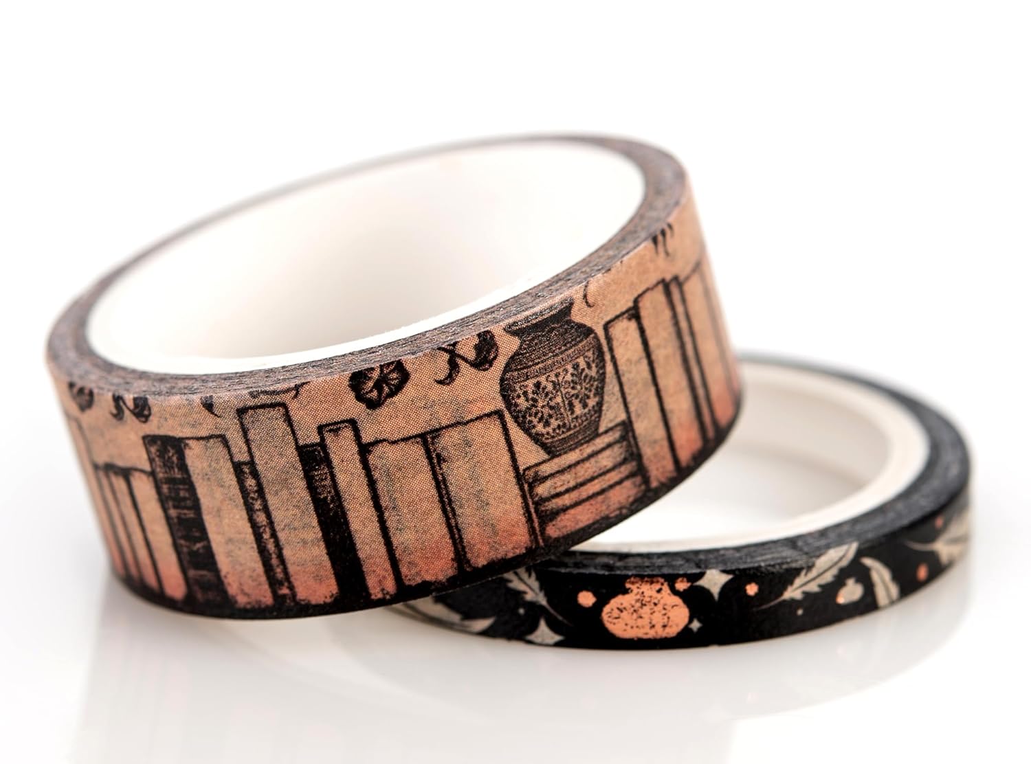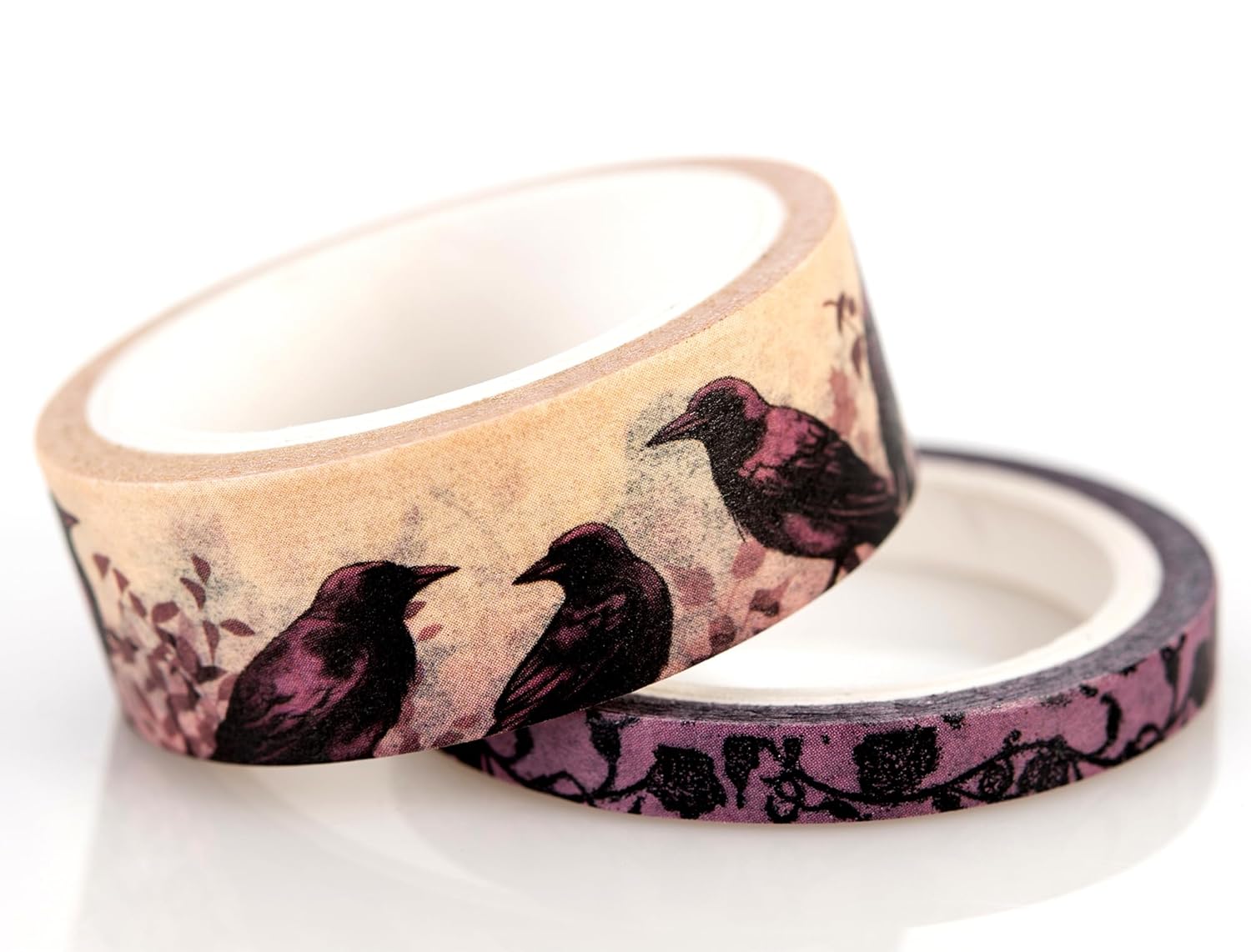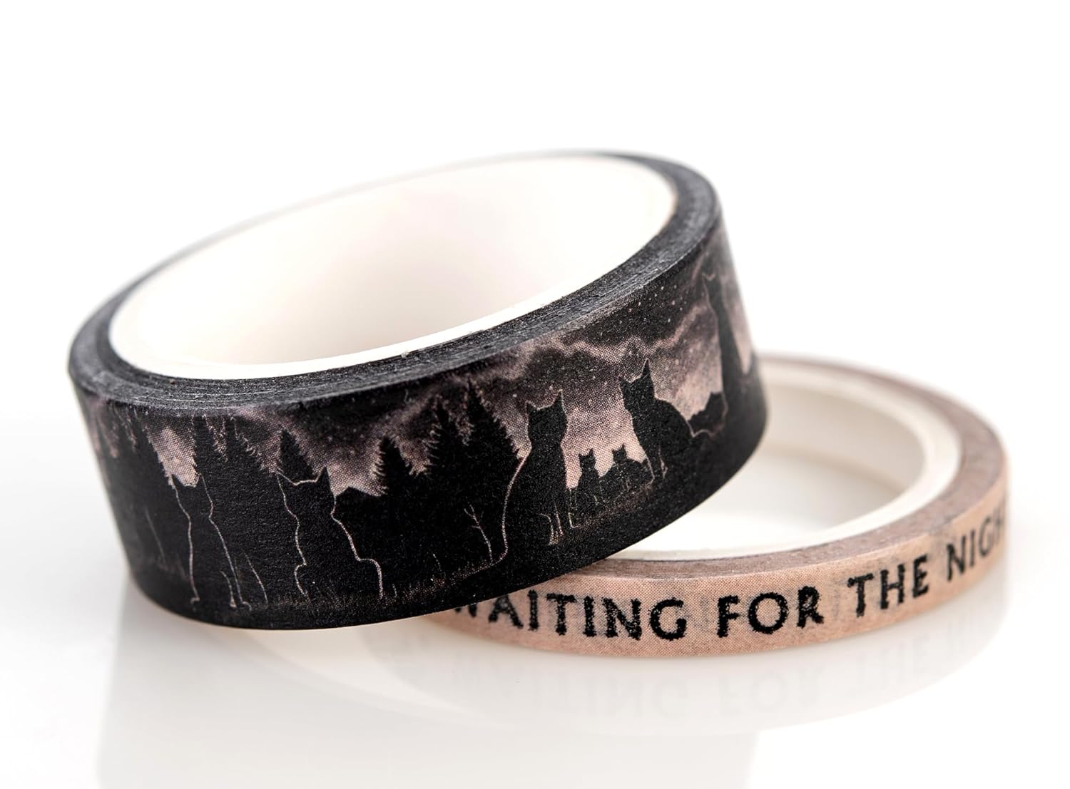 Conquest Journals Waiting for the Night Washi Tape Bundle, 8 Rolls, 4 15mm Rolls and 4 Corresponding 5mm Rolls, Goth Inspired Washi for All Your Planning, Journaling and Scrapbooking Projects