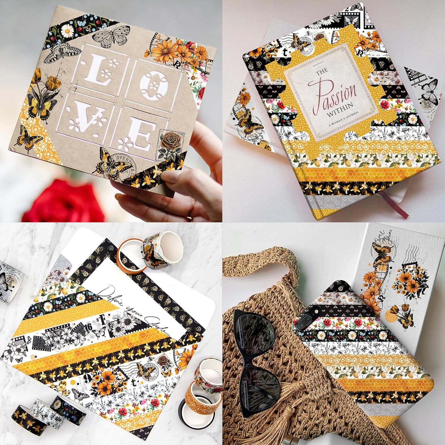 - Bee Theme - Each roll of the washi tape has different vintage designs such as bee, honeycomb, butterflies, plants, flowers, Letters, stamps, film and so on, which looks like a very classic retro aesthetic washi tape set, not easy to go out of date, bringing you enjoyment. Yellow and black white tones decorative tape adds a unique artistic touch to your creation.