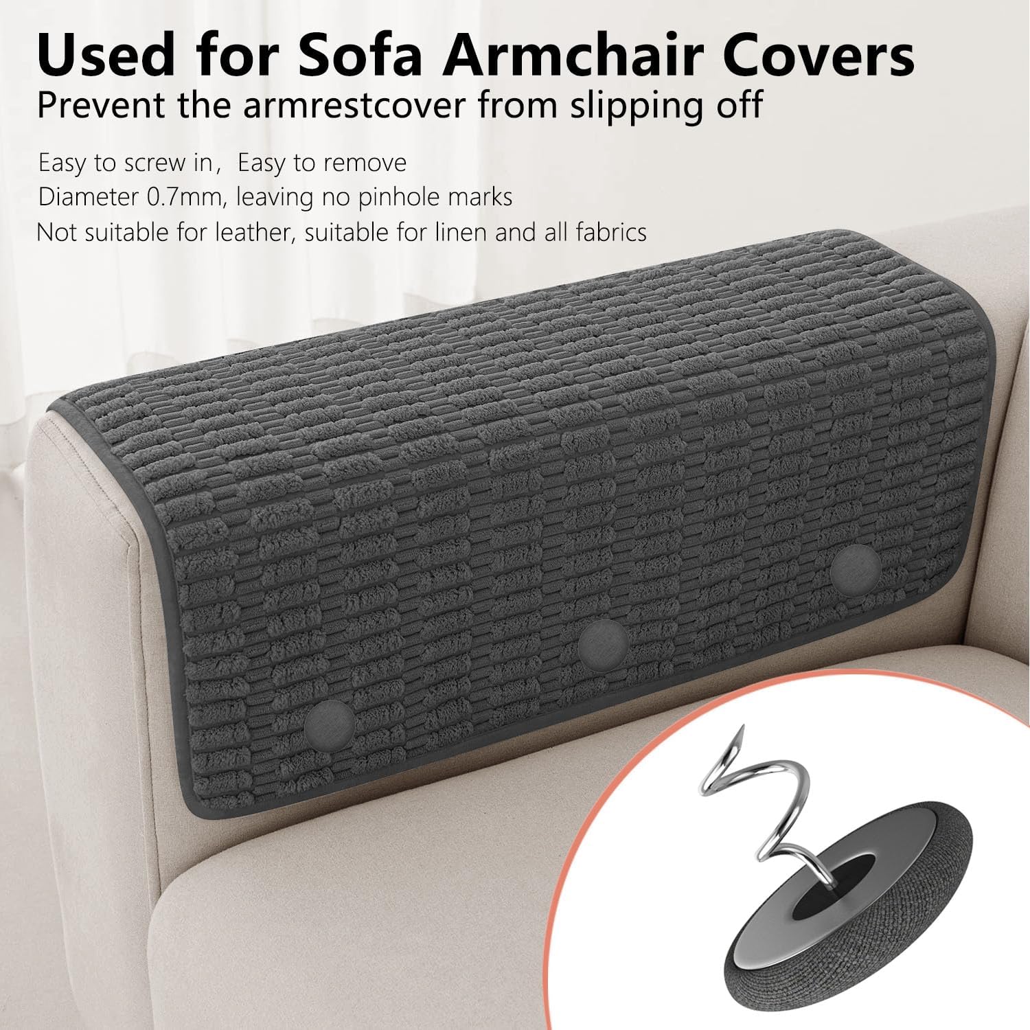 - The sofa cover fixing needle - AHAILUOO twist needle, just screw them on to prevent slipping and sagging. The twist needle can adjust the sofa cover and bed skirt to the perfect height, and tighten the loose cushion fabric.