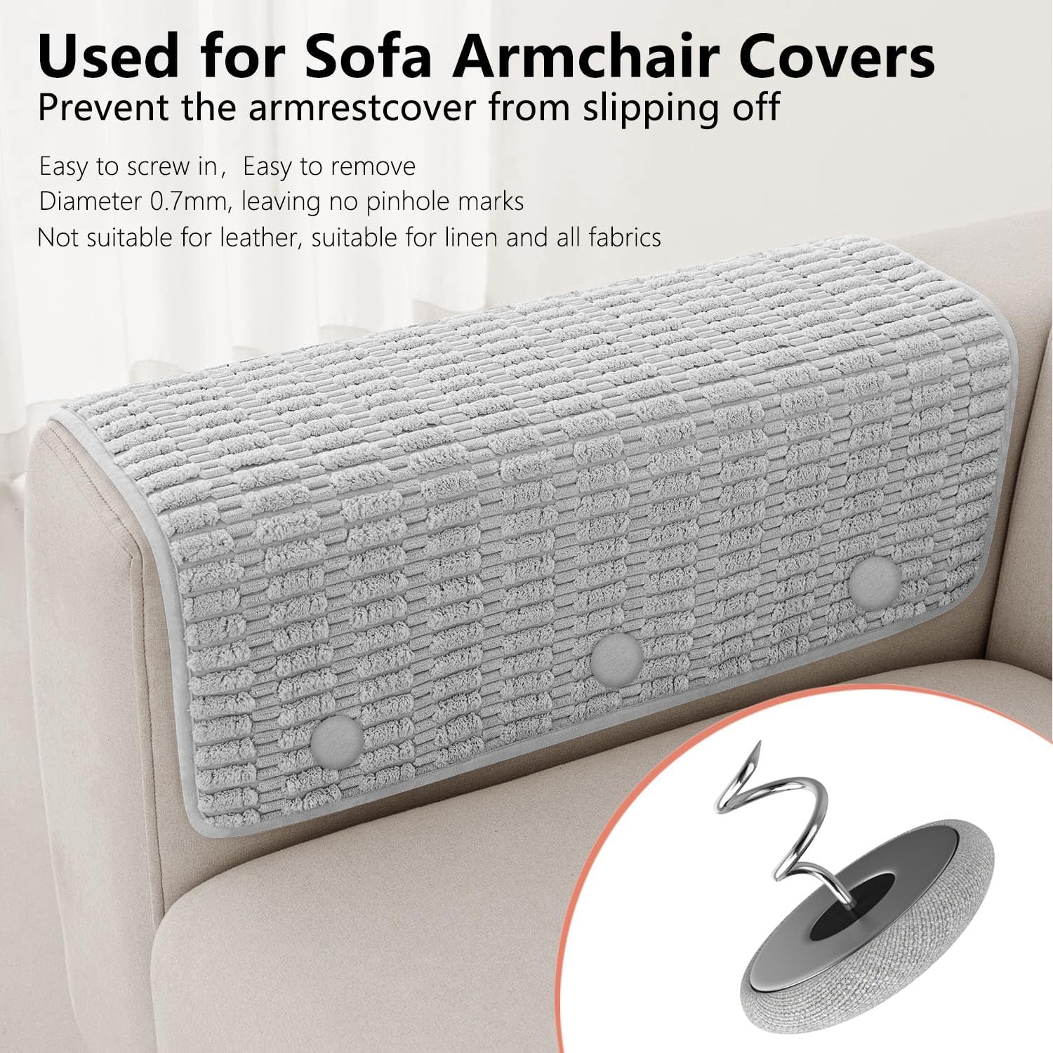 - The sofa cover fixing needle - AHAILUOO twist needle, just screw them on to prevent slipping and sagging. The twist needle can adjust the sofa cover and bed skirt to the perfect height, and tighten the loose cushion fabric.