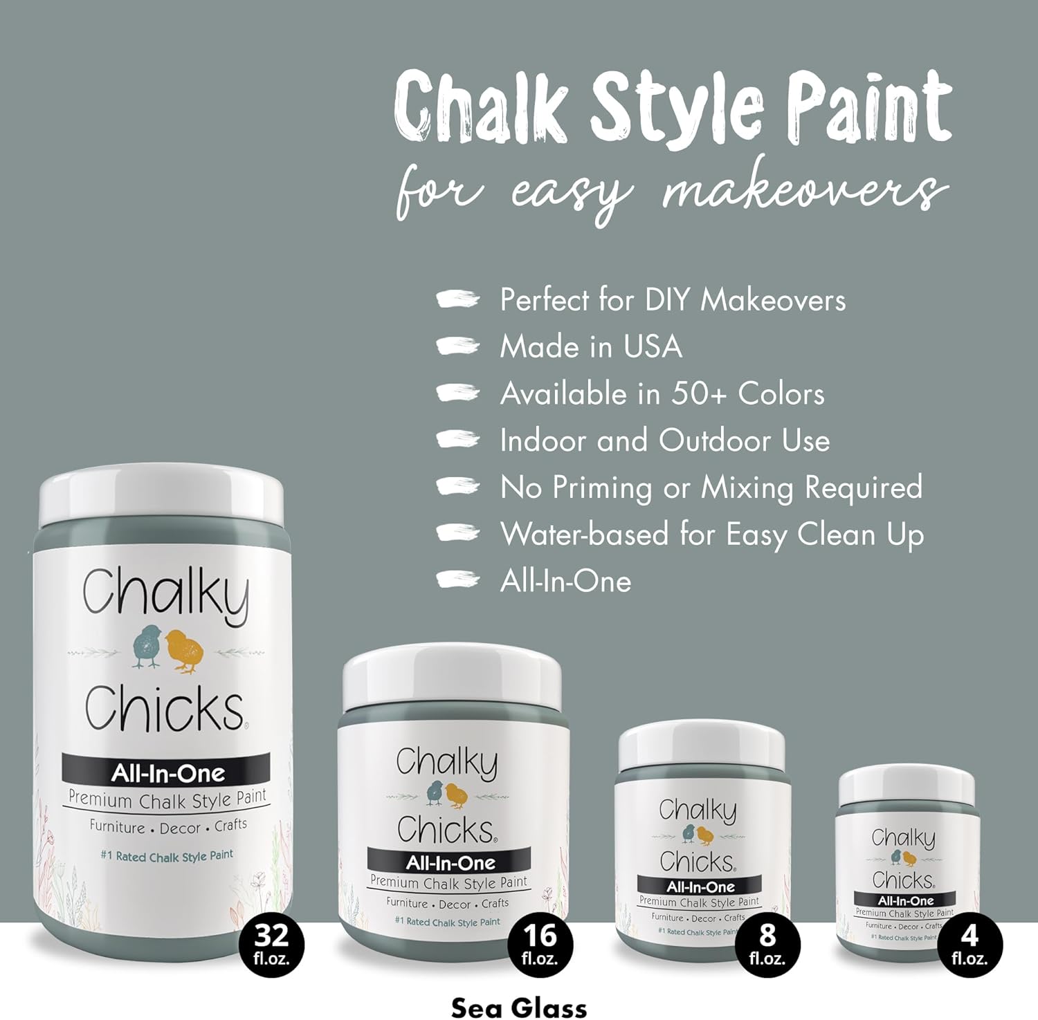 - TRANSFORM FURNITURE AND HOME DECOR WITH EASE: Chalky Chicks will save you time, money, and hassle. No sanding, priming, or multiple coats needed—just start painting your furniture with our cabinet paint no sanding or priming. Our paint is suitable for wood, metal, concrete, textiles, laminate, and more. Whether you prefer navy blue chalk paint, light blue paint, or green chalk paint, our chalk paint for furniture transforms any space with ease, making it ideal for DIY projects & craft painting.