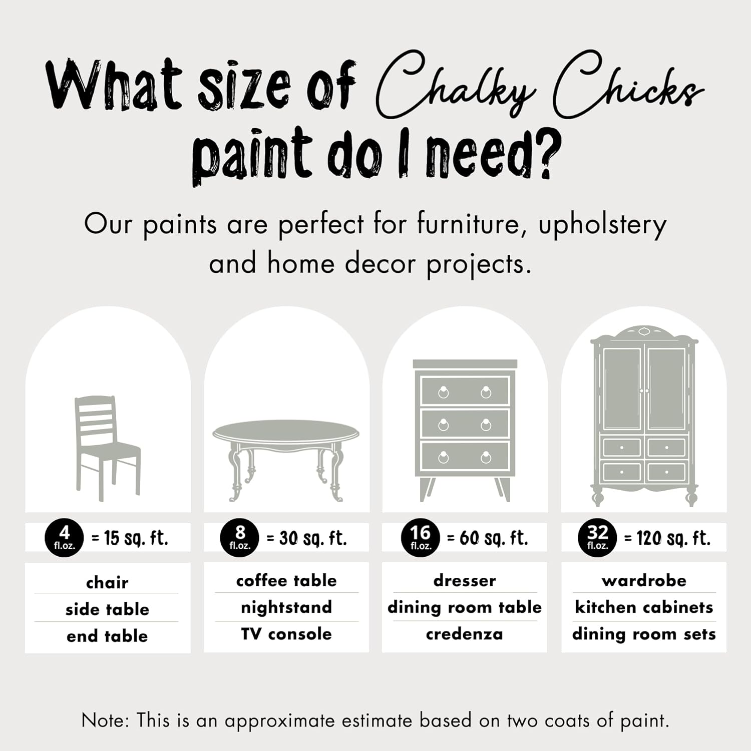 - TRANSFORM FURNITURE AND HOME DECOR WITH EASE: Chalky Chicks will save you time, money, and hassle. No sanding, priming, or multiple coats neededโjust start painting your furniture with our cabinet paint no sanding or priming. Our paint is suitable for wood, metal, concrete, textiles, laminate, and more. Whether you prefer navy blue chalk paint, light blue paint, or green chalk paint, our chalk paint for furniture transforms any space with ease, making it ideal for DIY projects & craft painting.