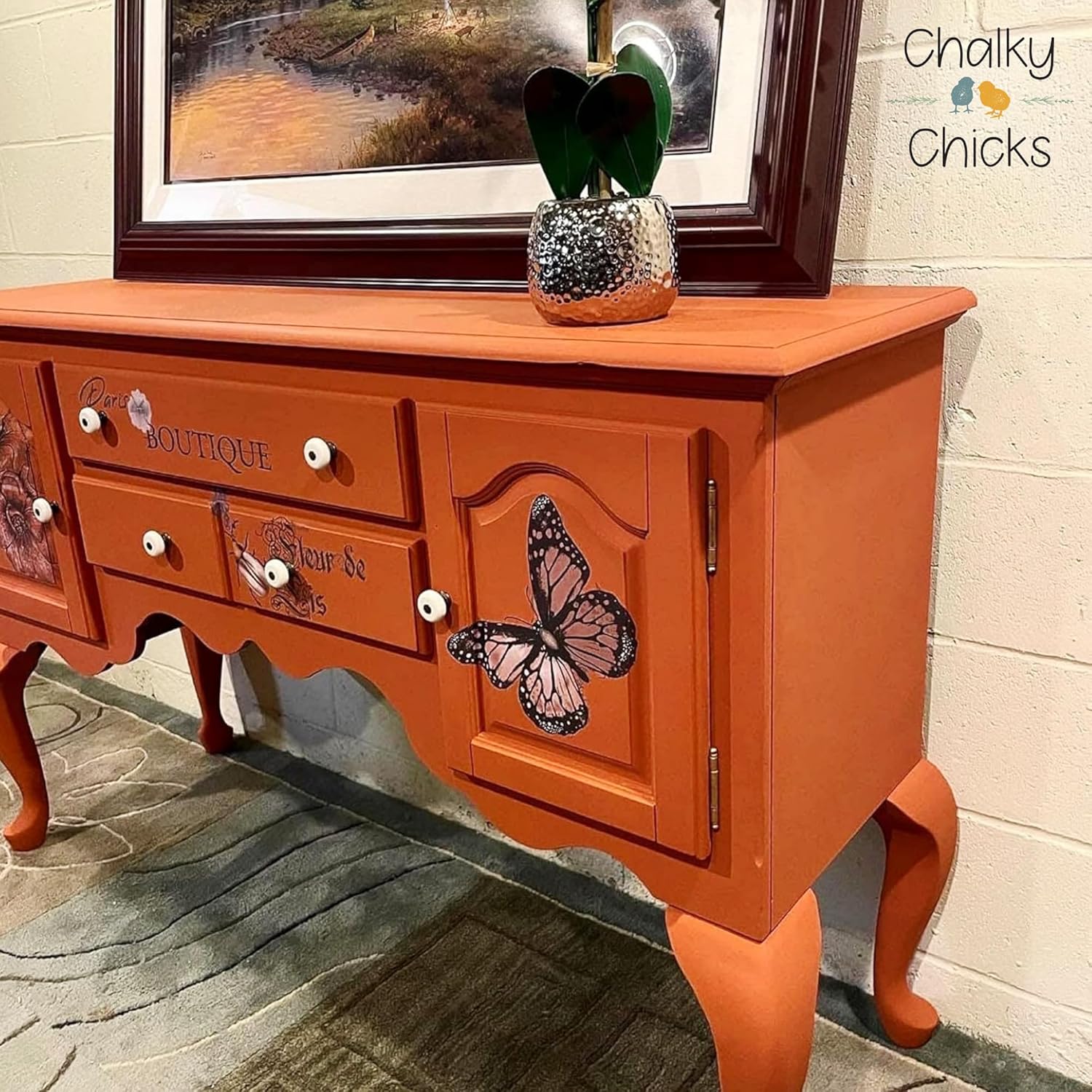 Chalky Chicks All-in-One Chalk Paint for Furniture or Cabinet - 4 Fl Oz - Matte Finish Pumpkin Pie Orange for Metal, Wood Furniture Paint - No Sanding All-in-One for Home Decor & Crafts, USA Made