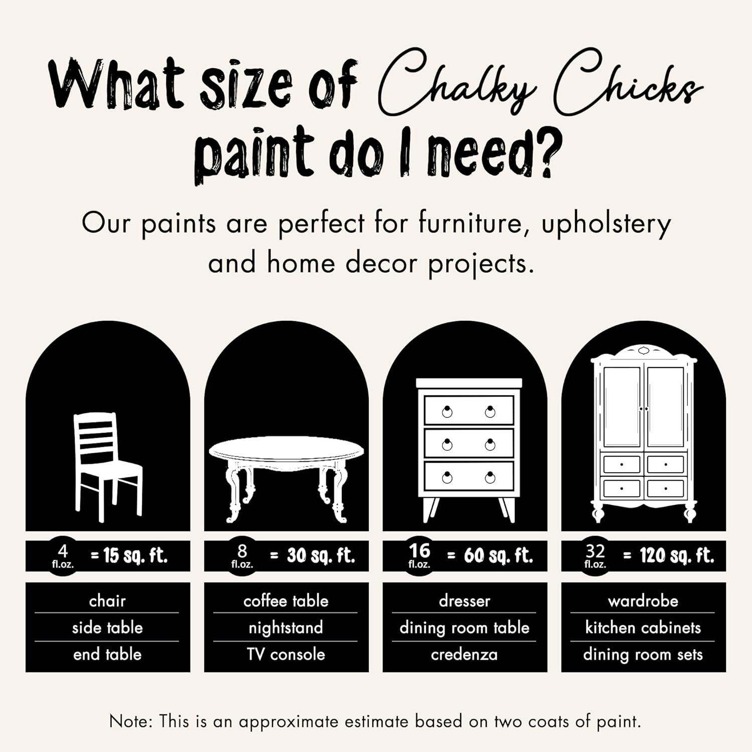 - TRANSFORM FURNITURE AND HOME DECOR WITH EASE: Chalky Chicks will save you time, money, and hassle. No sanding, priming, or multiple coats needed—just start painting your furniture with our cabinet paint no sanding or priming. Our paint is suitable for wood, metal, concrete, textiles, laminate, and more. Whether you prefer navy blue chalk paint, light blue paint, or green chalk paint, our chalk paint for furniture transforms any space with ease, making it ideal for DIY projects & craft painting.