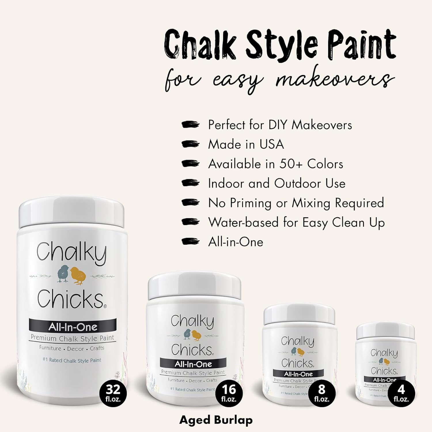 Chalky Chicks All-in-One Chalk Paint for Furniture or Cabinet - 4 Fl Oz - Matte Finish Aged Burlap White for Metal, Wood Furniture Paint - No Sanding All-in-One for Home Decor & Crafts, USA Made