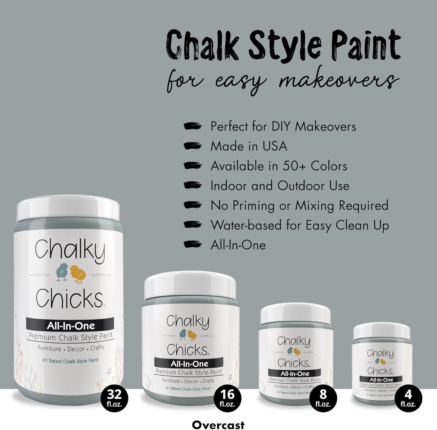Chalky Chicks All-in-One Chalk Paint for Furniture or Cabinet - 4 Fl Oz - Matte Finish Overcast (Blue Gray) for Metal, Wood Furniture Paint - No Sanding All-in-One for Home Decor & Crafts, USA Made